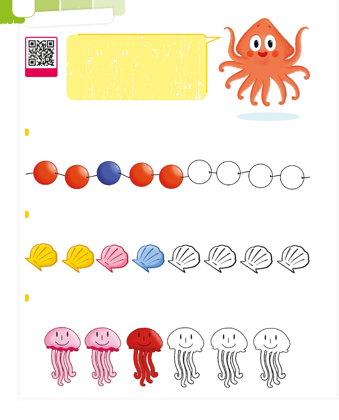 PLUS VUOLE FARE UN BRACCIALETTO. CONTINUA A COLORARE COME HA INIZIATO LUI. PLUS METTE IN FILA LE SUE AMICHE MEDUSE. COLORALE COME HA INIZIATO LUI. CIAO! IO MI CHIAMO PLUS E I NUMERI SONO LA MIA PASSIONE! QUEST’ANNO TI PORTERÒ ALLA SCOPERTA DEI NUMERI INSIEME ALLA CLASSE DEL MAESTRO MANTA. SEI PRONTO/A A CONTARE CON ME?