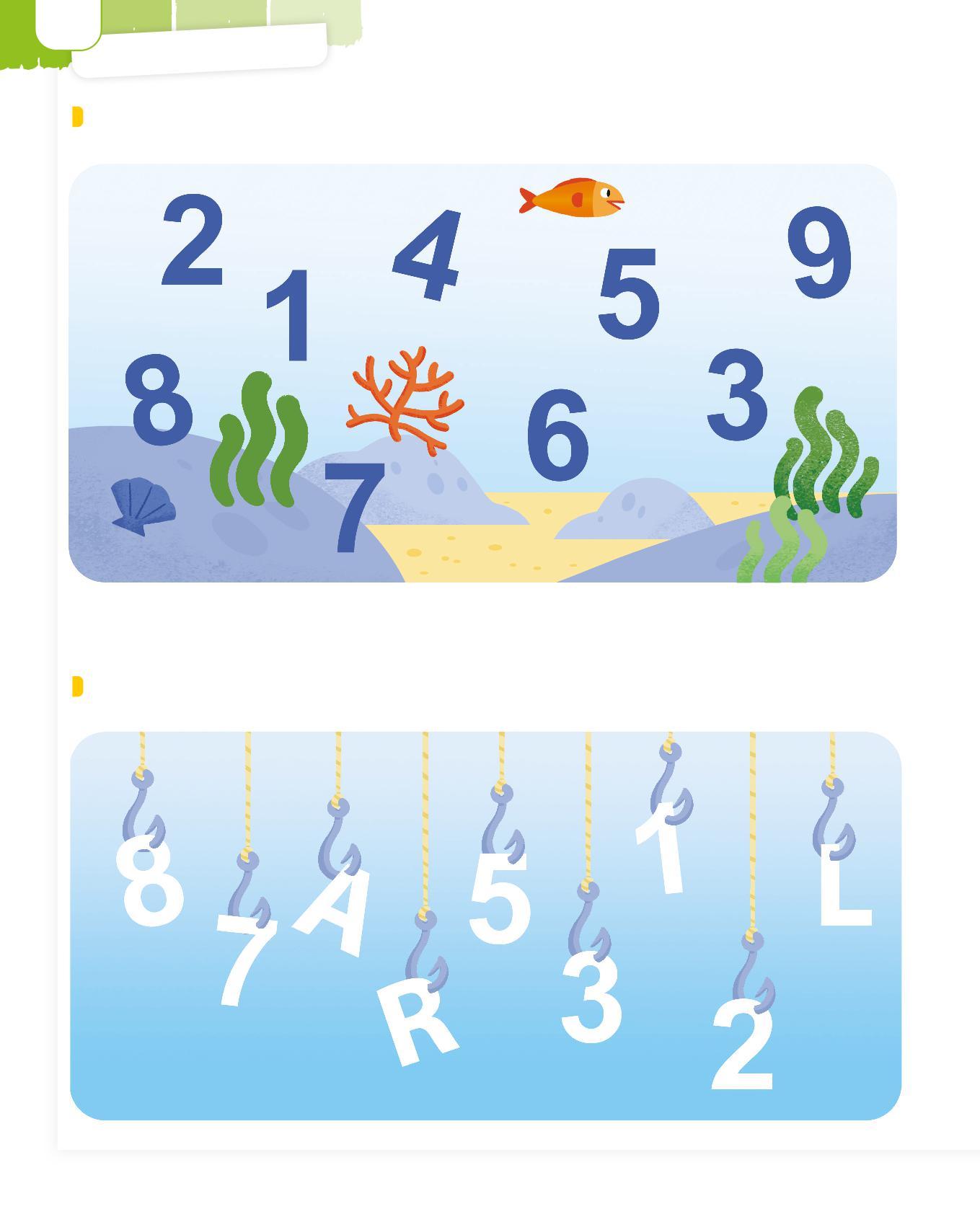 COLORA SOLO I NUMERI APPESI AGLI AMI DA PESCA.