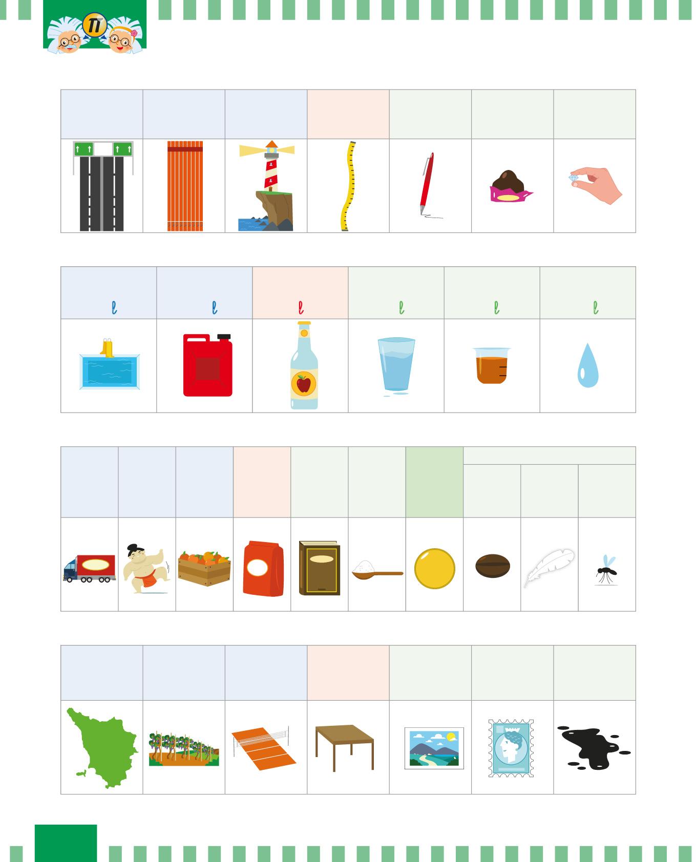 • Fotocopia e ritaglia le tabelle tratteggiate con le diverse unità di misura.
