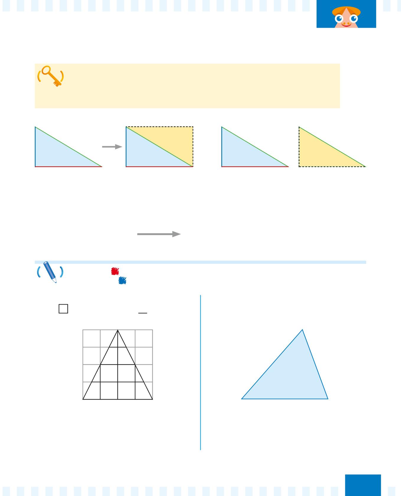 Ottieni la formula per calcolare l’area del triangolo dalla formula dell’area del rettangolo diviso 2: il triangolo è la metà del rettangolo!