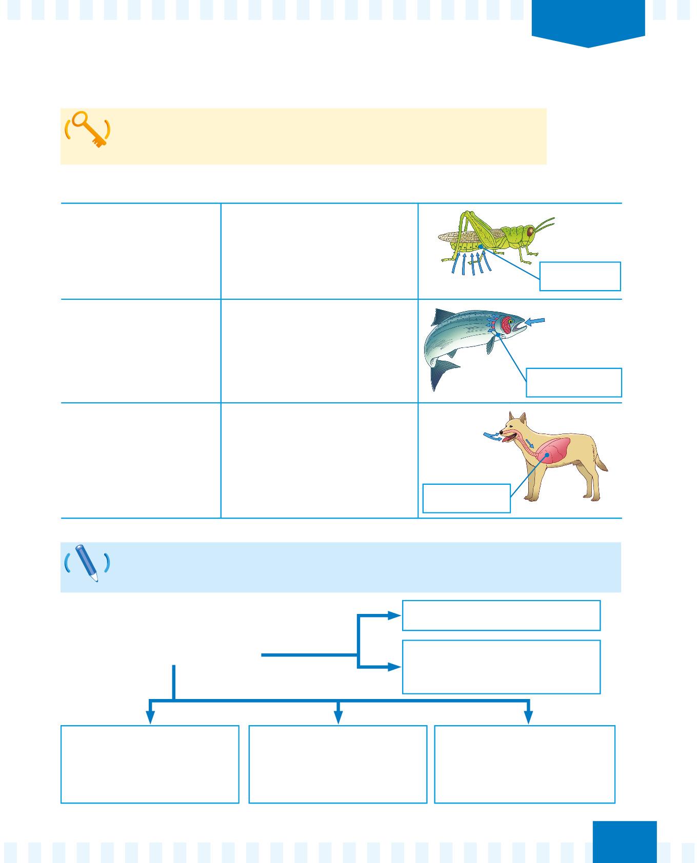 Completa lo schema con le parole giuste. Anidride carbonica • branchie • ossigeno • polmoni • stigmi.