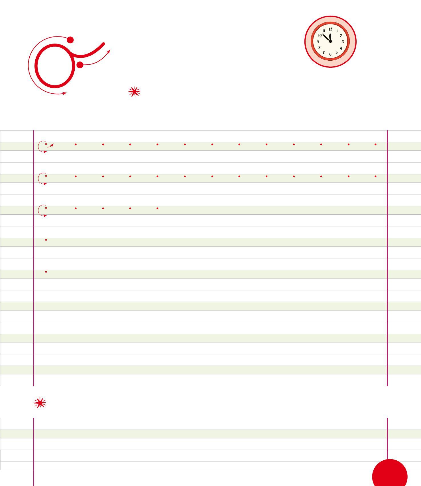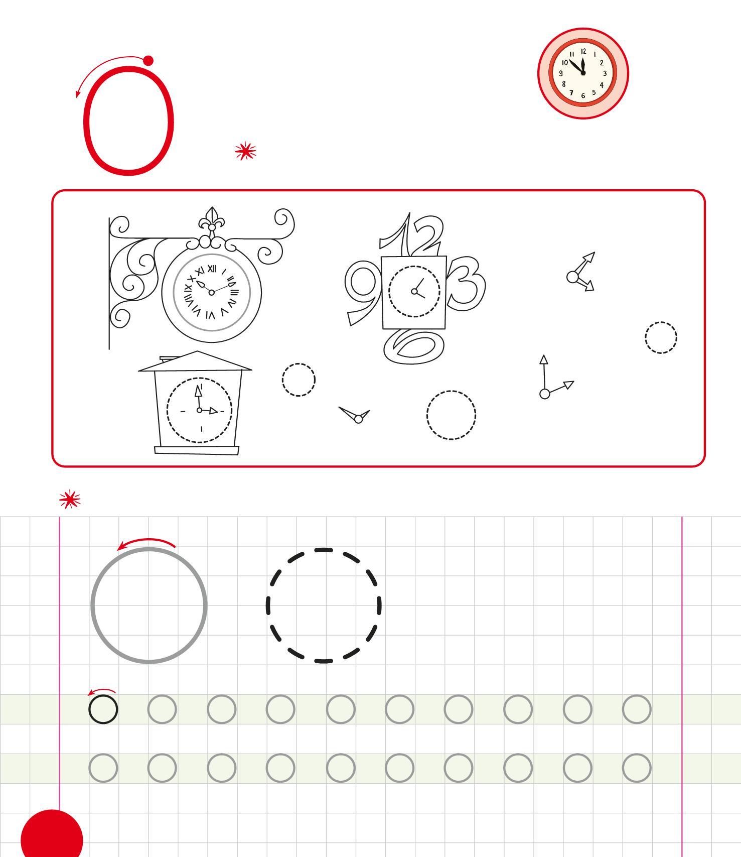RIPASSA LE O, POI TRACCIANE ALTRE INTORNO ALLE LANCETTE. COLORA IL DISEGNO.