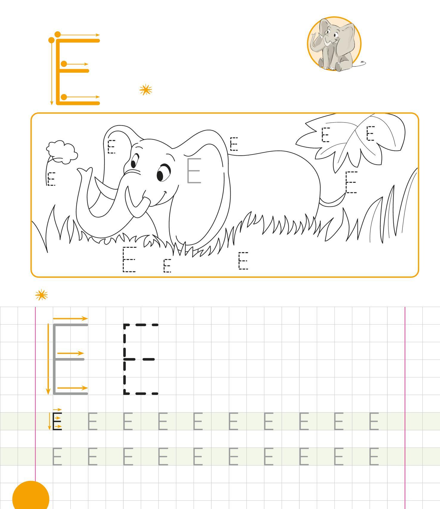 RIPASSA LE E, POI TRACCIANE ALTRE NELL’ERBA. COLORA IL DISEGNO.