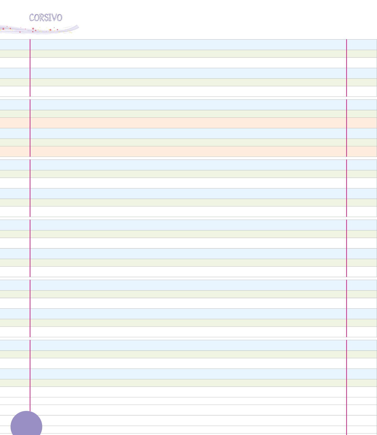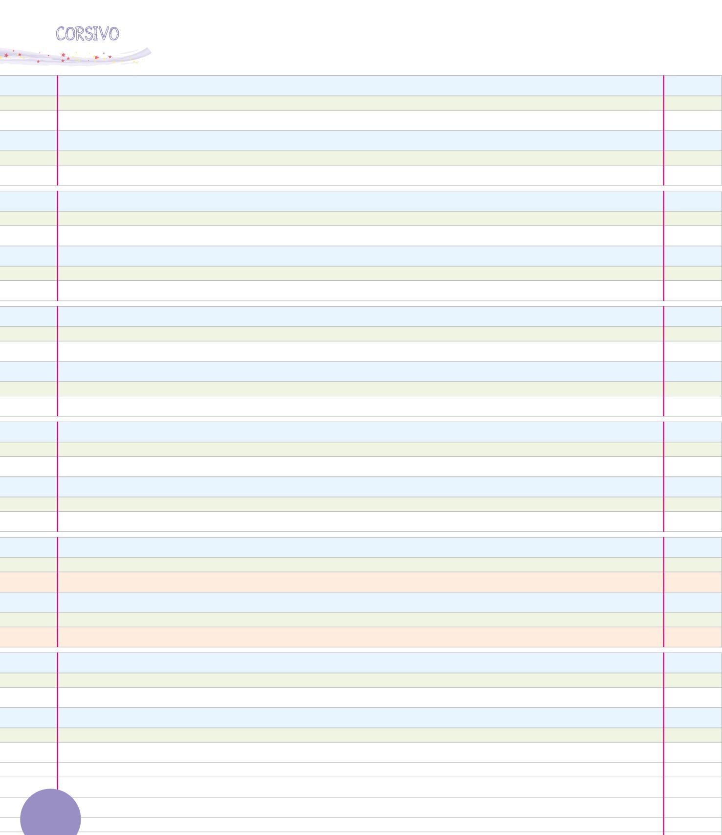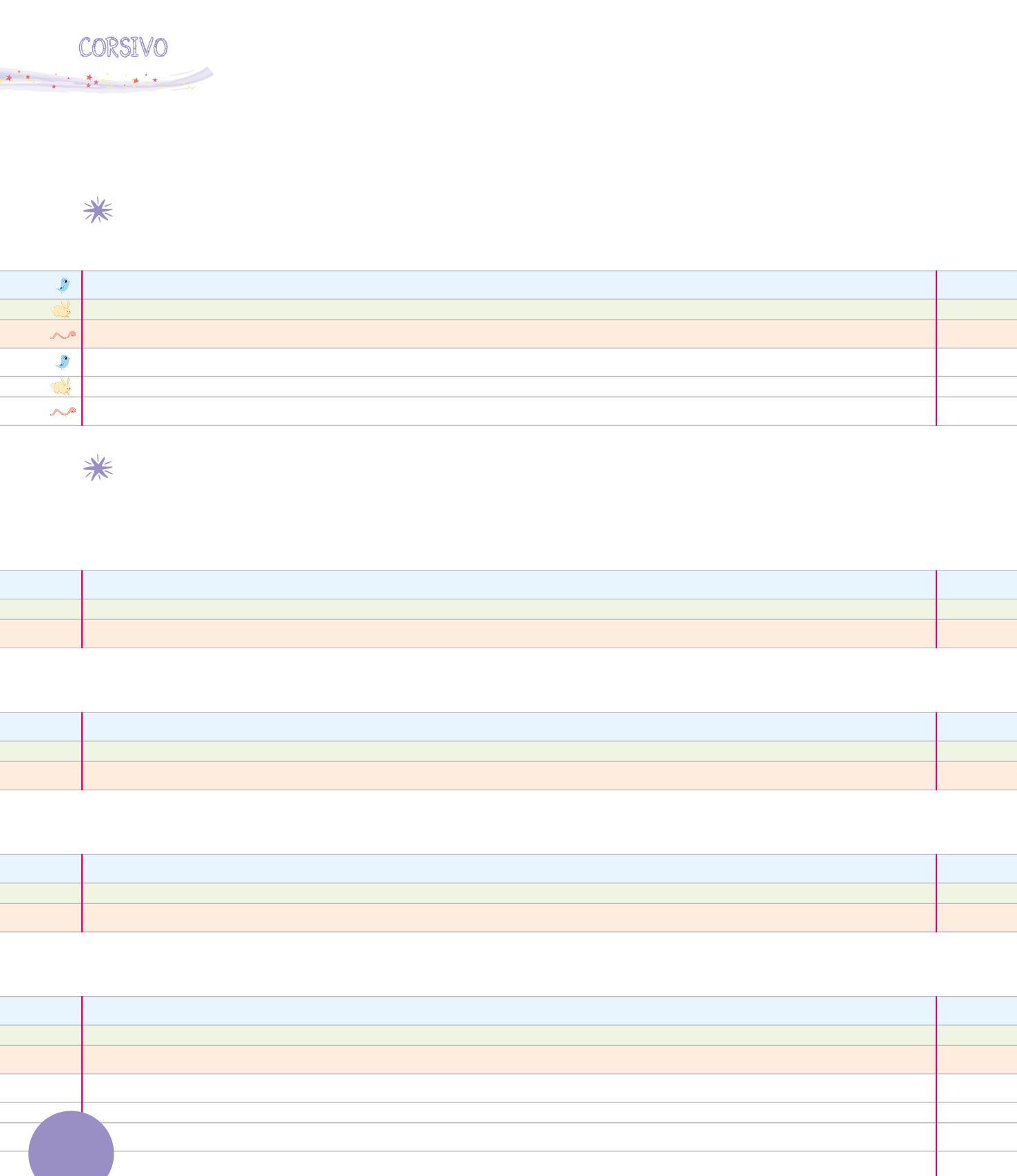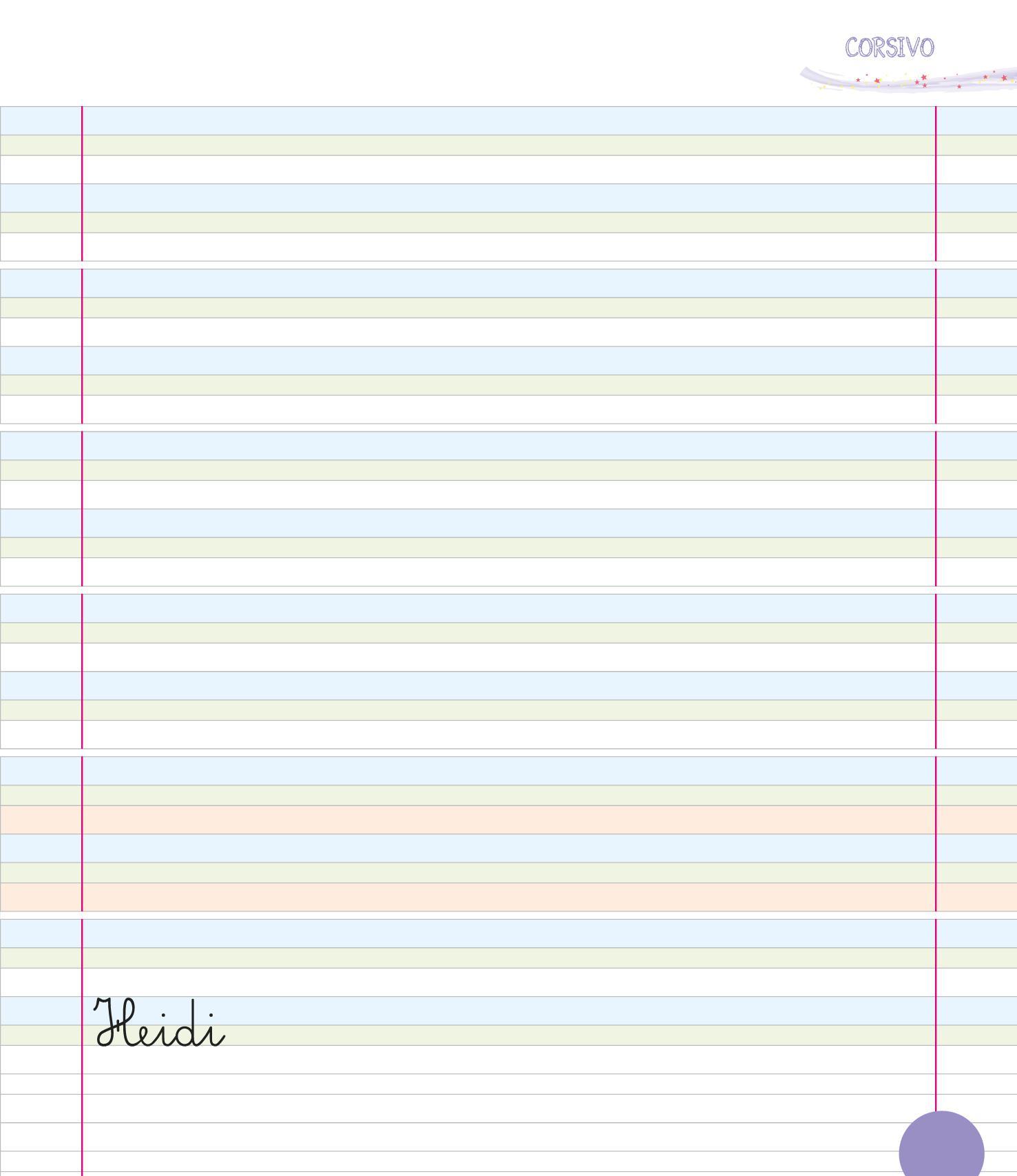 PER SCRIVERE IN CORSIVO È IMPORTANTE USARE BENE LE TRE RIGHE: IL PRATO, LA TERRA E IL CIELO. COLORA LE RIGHE COME NELL’ESEMPIO.