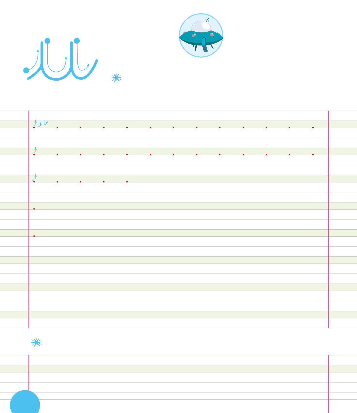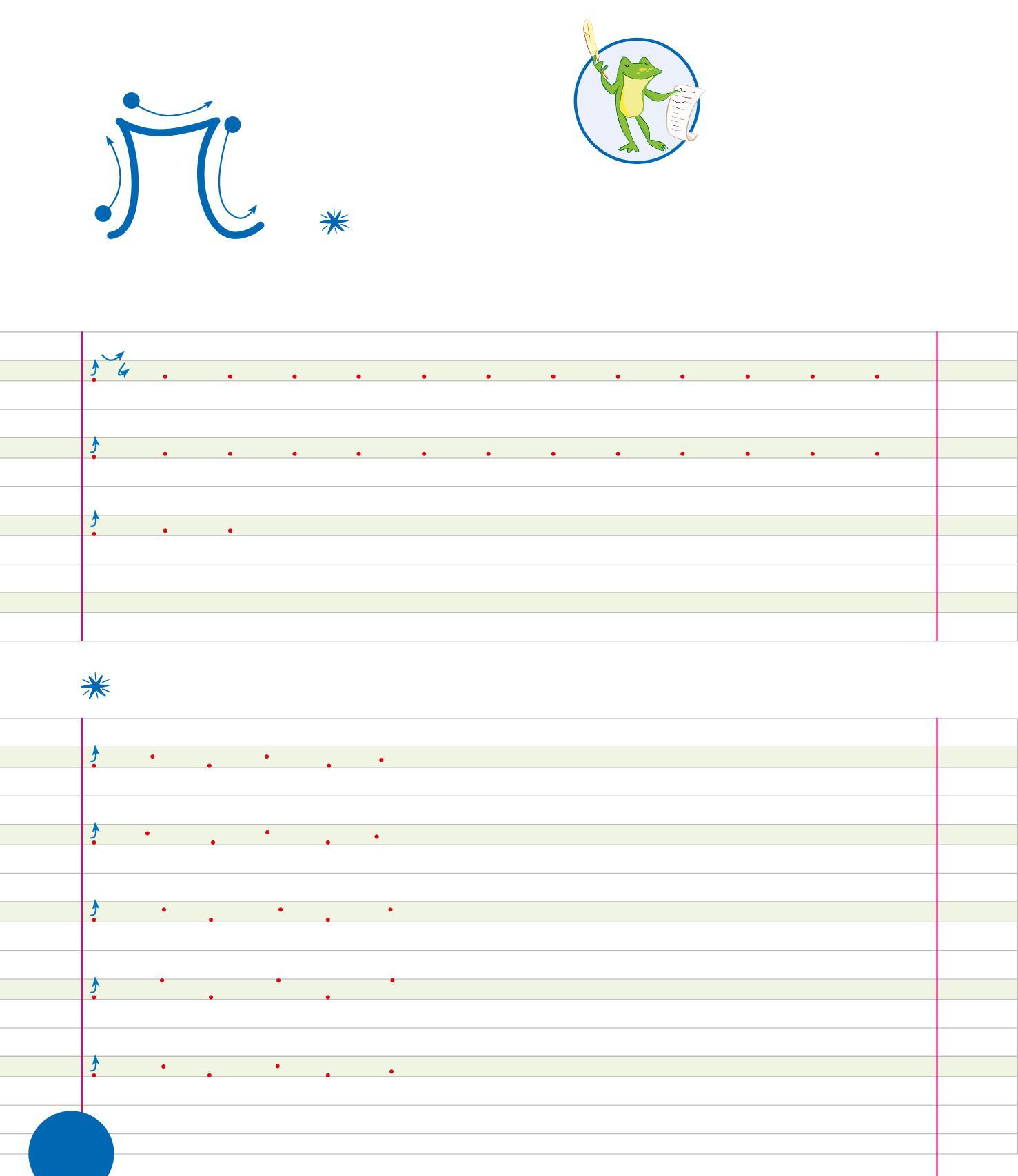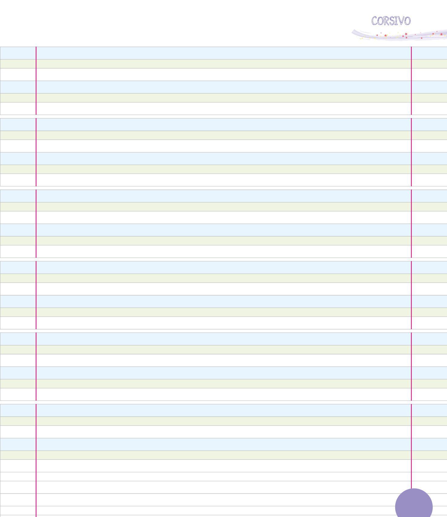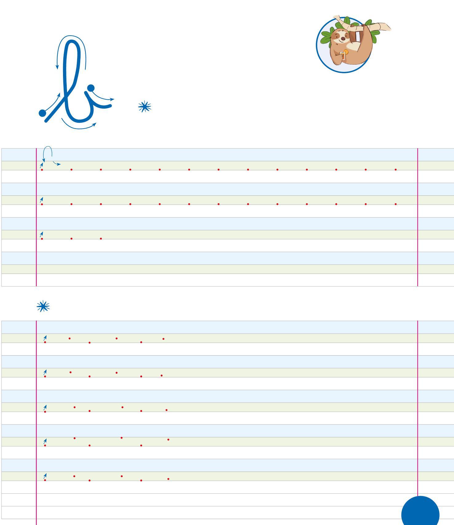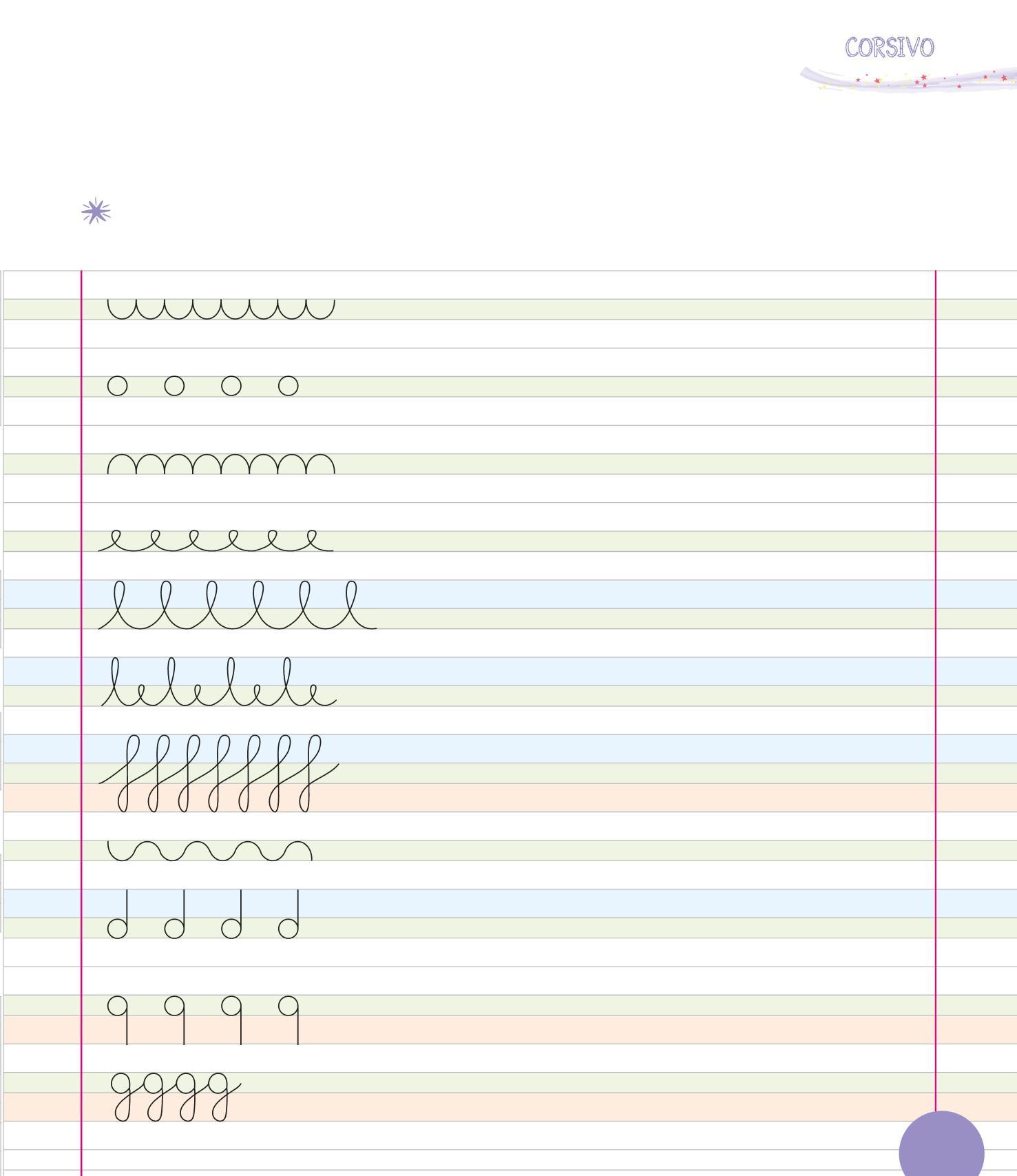 PER SCRIVERE IN CORSIVO È IMPORTANTE USARE BENE LE TRE RIGHE: IL PRATO, LA TERRA E IL CIELO. COLORA LE RIGHE COME NELL’ESEMPIO.