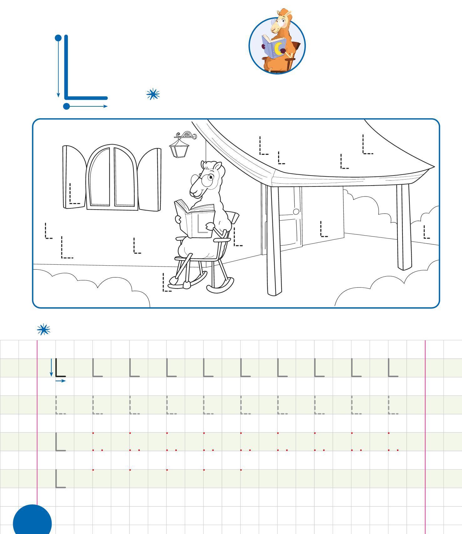 RIPASSA LE L, POI TRACCIANE ALTRE SUL TETTO. COLORA IL DISEGNO.