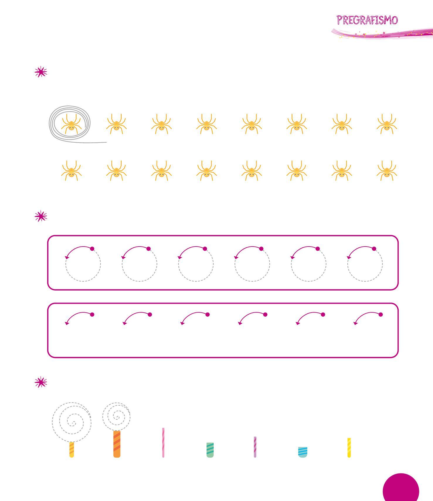 CATTURA I RAGNI CERCHIANDOLI PER QUATTRO VOLTE. PROCEDI DA SINISTRA A DESTRA E NON SPEZZARE IL FILO. SEGUI L’ESEMPIO.