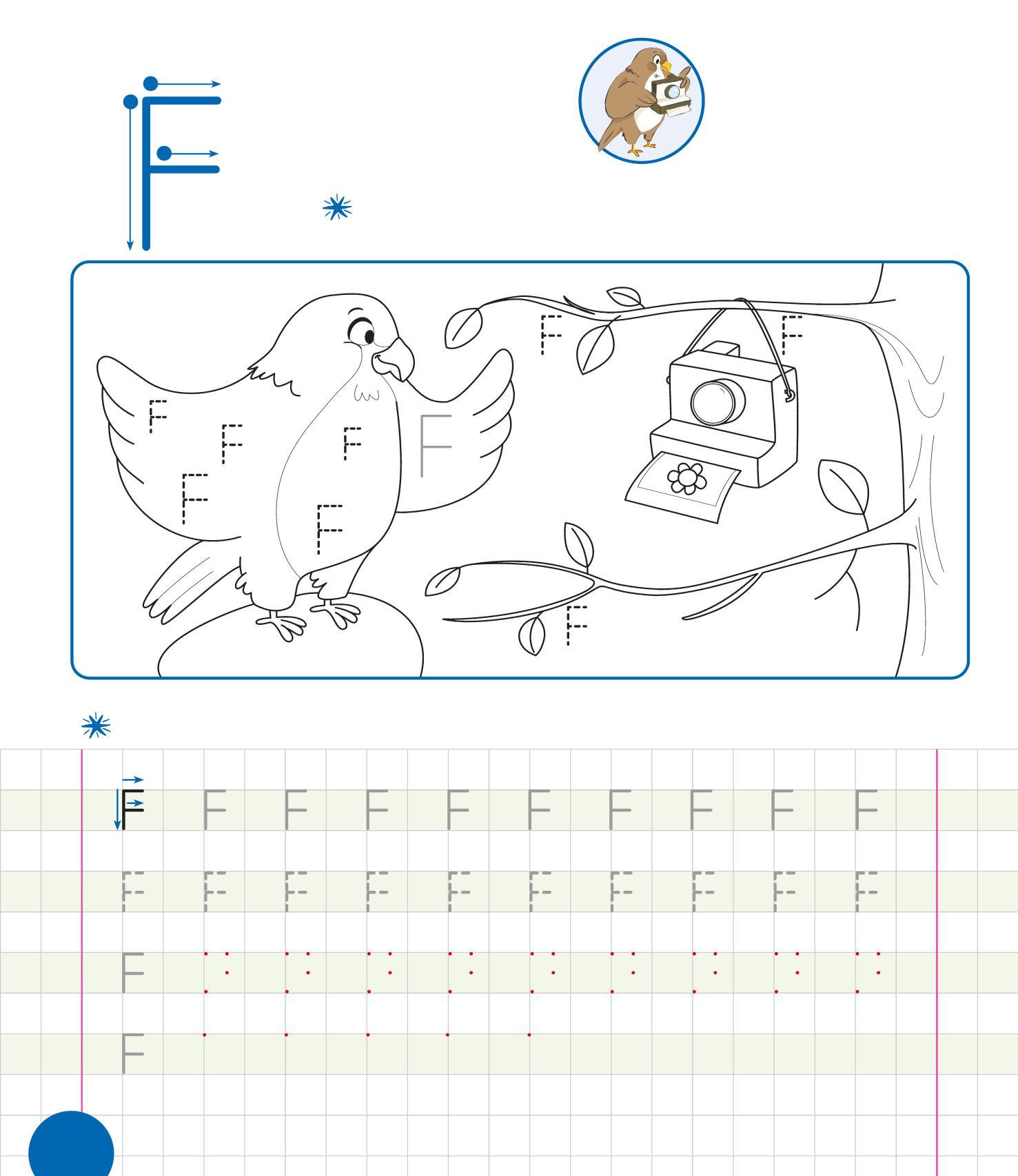 RIPASSA LE F, POI TRACCIANE ALTRE SUL RAMO. COLORA IL DISEGNO.