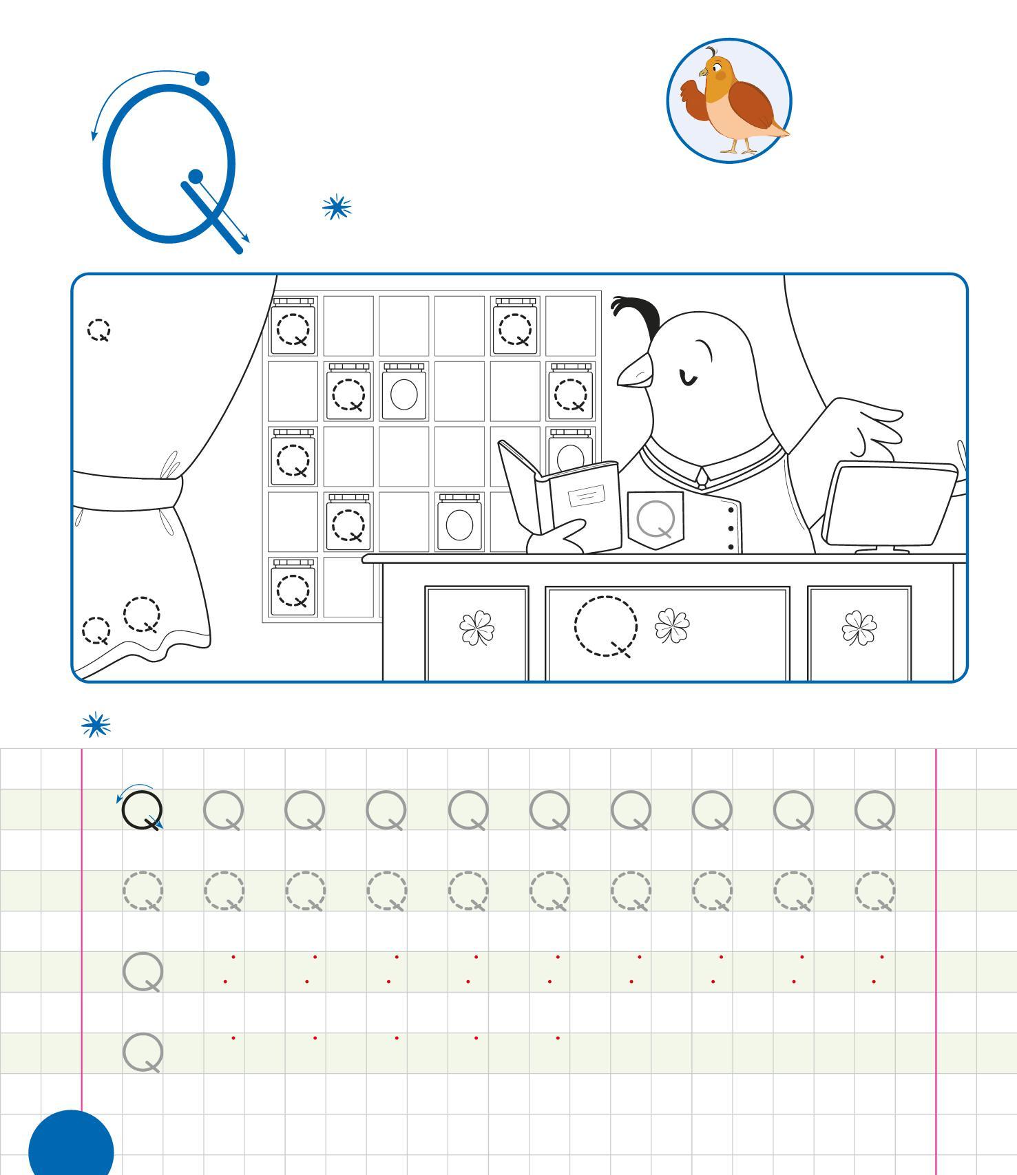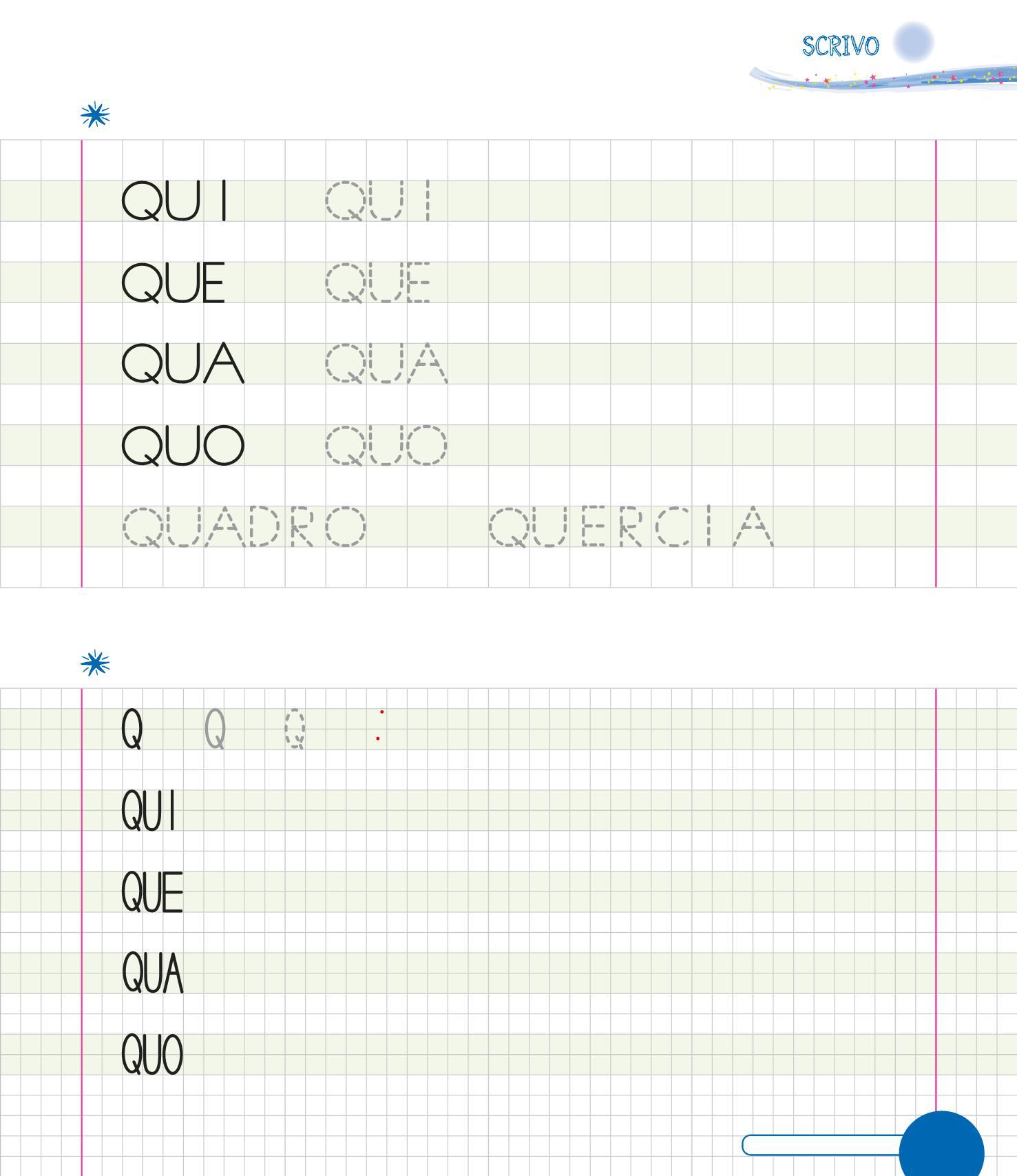 RIPASSA LE Q, POI TRACCIANE ALTRE SULLA TENDA. COLORA IL DISEGNO.