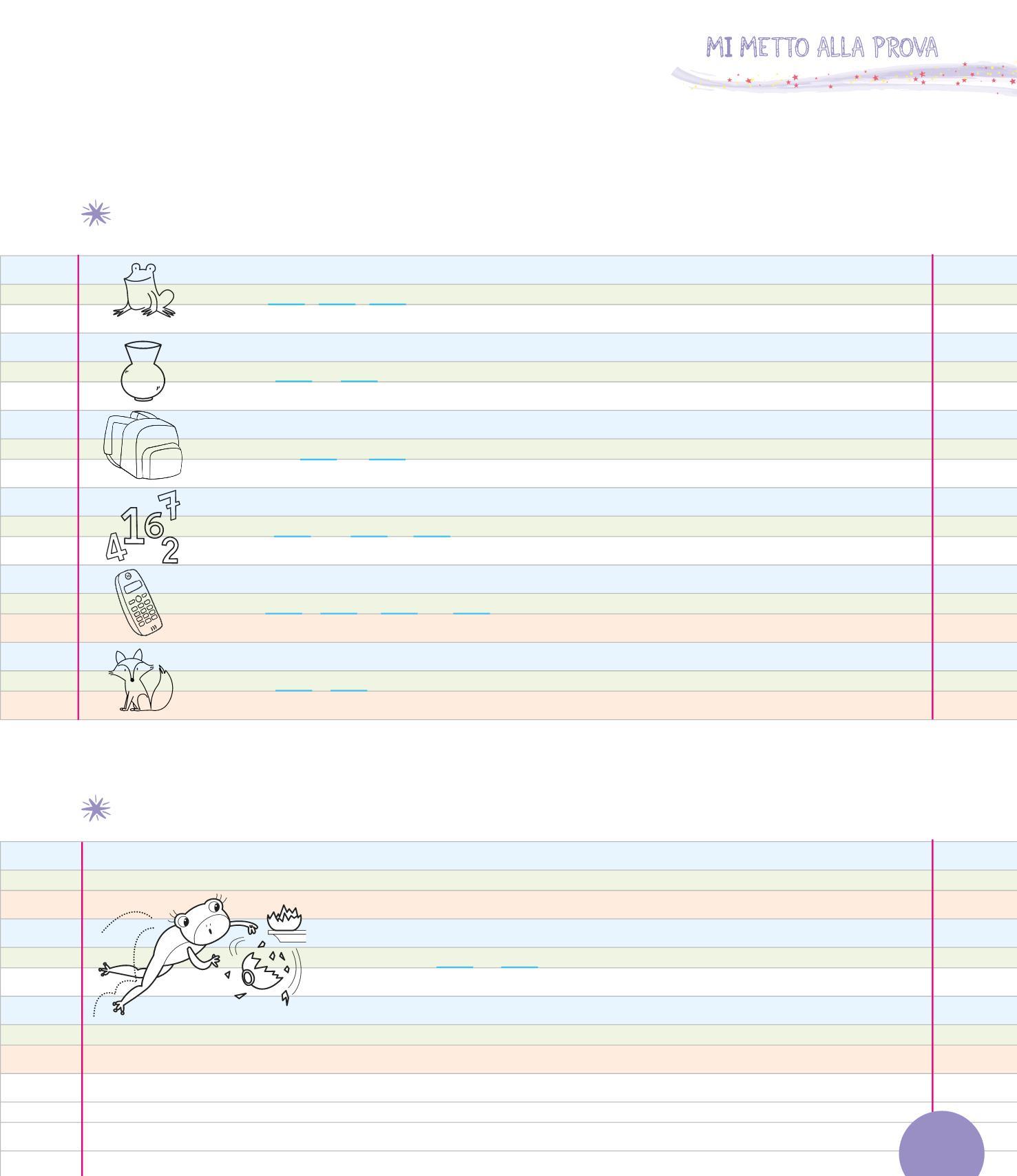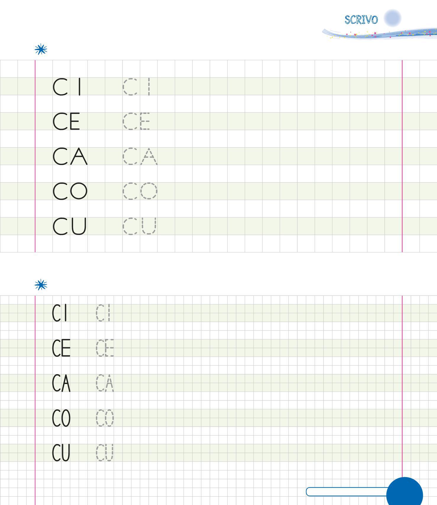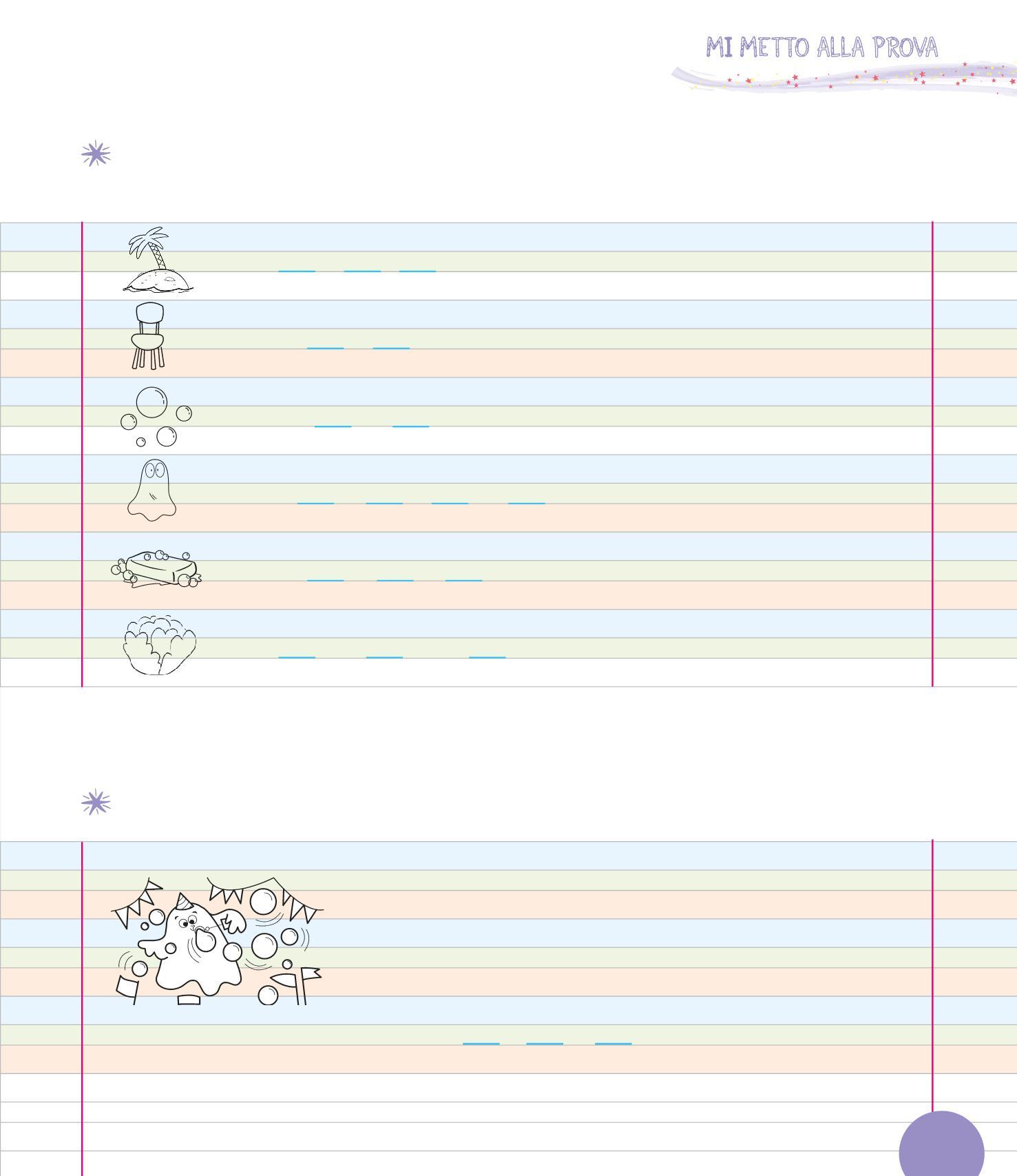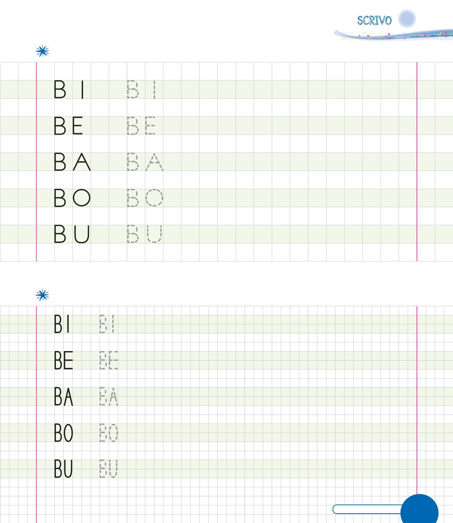 SCRIVI LA LETTERA E POI LE SILLABE IN UNO SPAZIO PIÙ STRETTO.