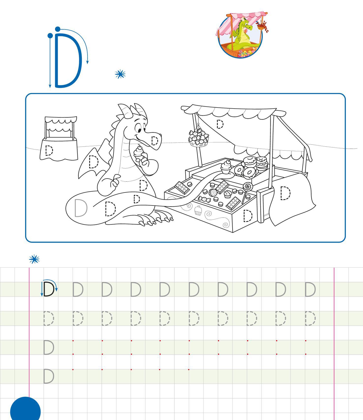 RIPASSA LE D, POI TRACCIANE ALTRE SULLE BANCARELLE. COLORA IL DISEGNO.