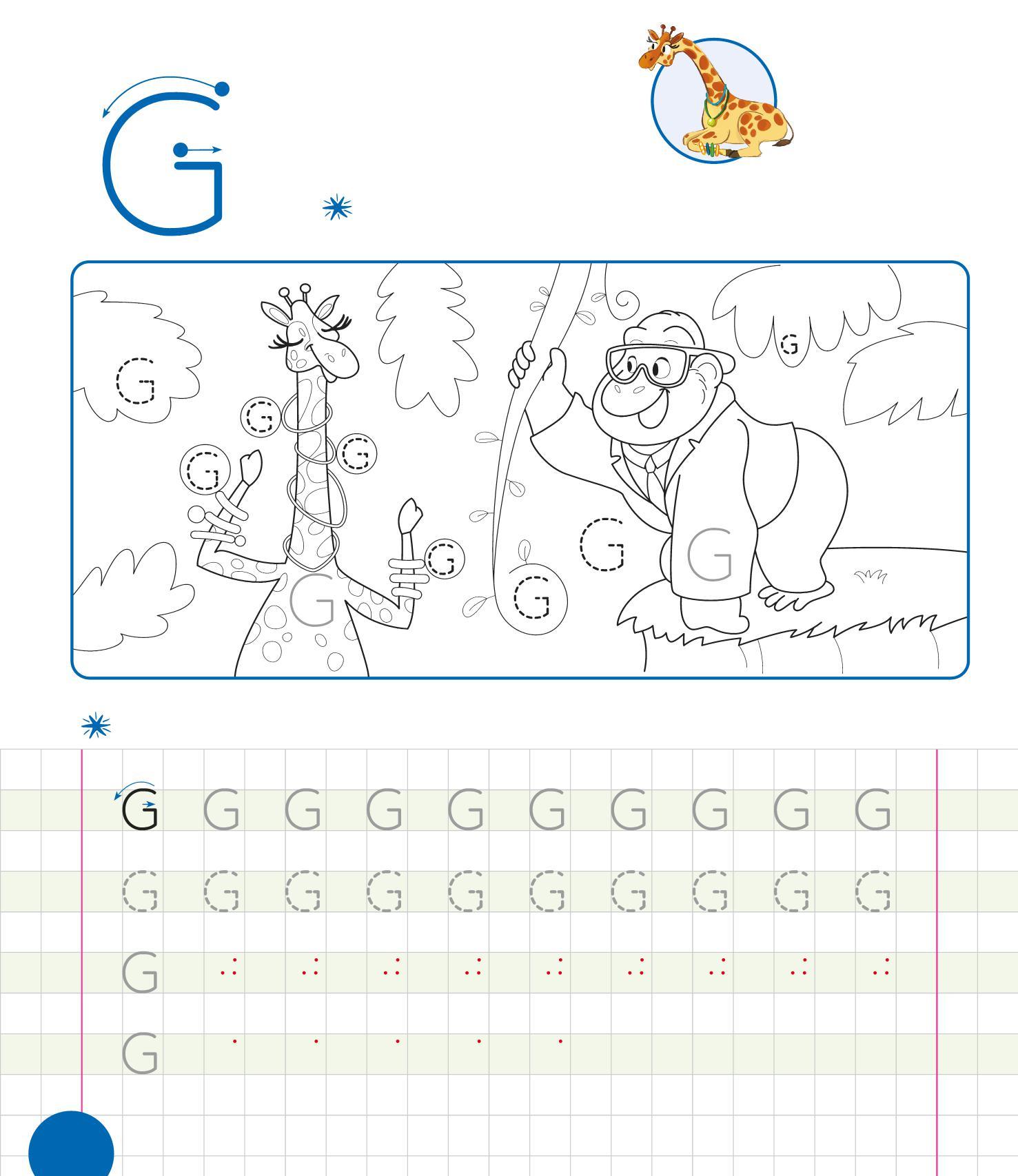 RIPASSA LE G, POI TRACCIANE ALTRE NELLE FOGLIE. COLORA IL DISEGNO.