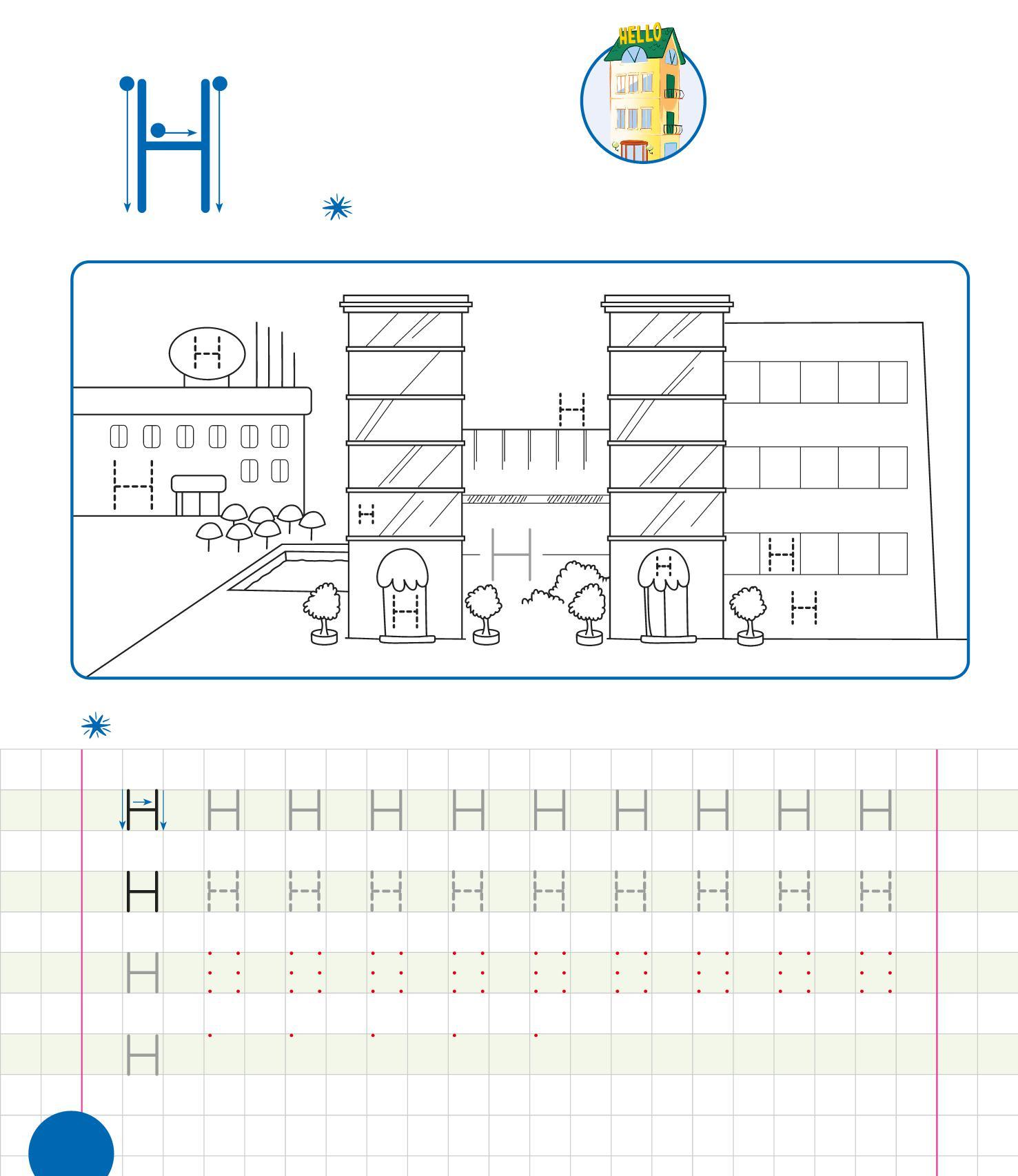 RIPASSA LE H, POI TRACCIANE ALTRE SULLE FINESTRE. COLORA IL DISEGNO.