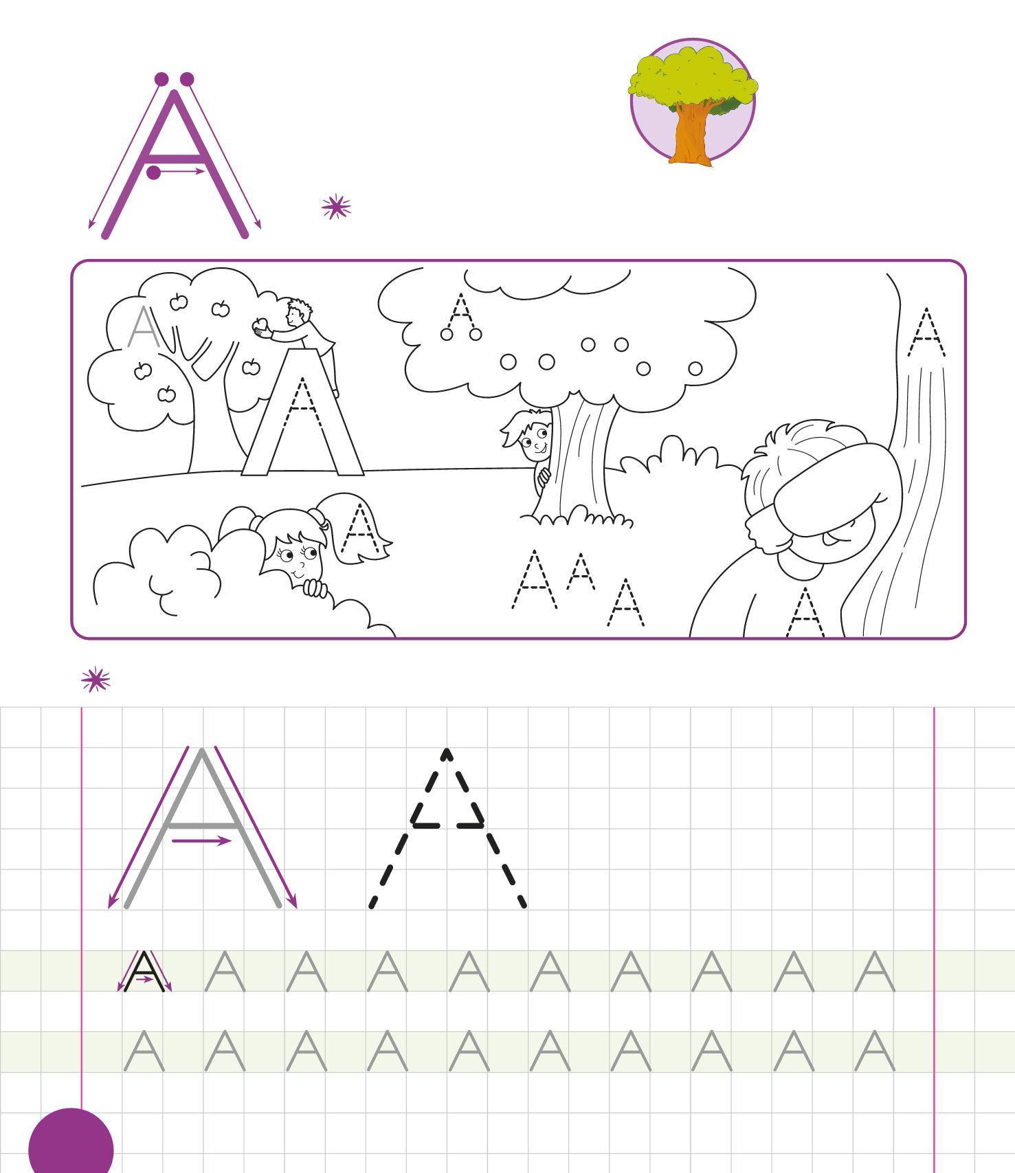 RIPASSA LE A, POI TRACCIANE ALTRE SULL’ALBERO. COLORA IL DISEGNO.