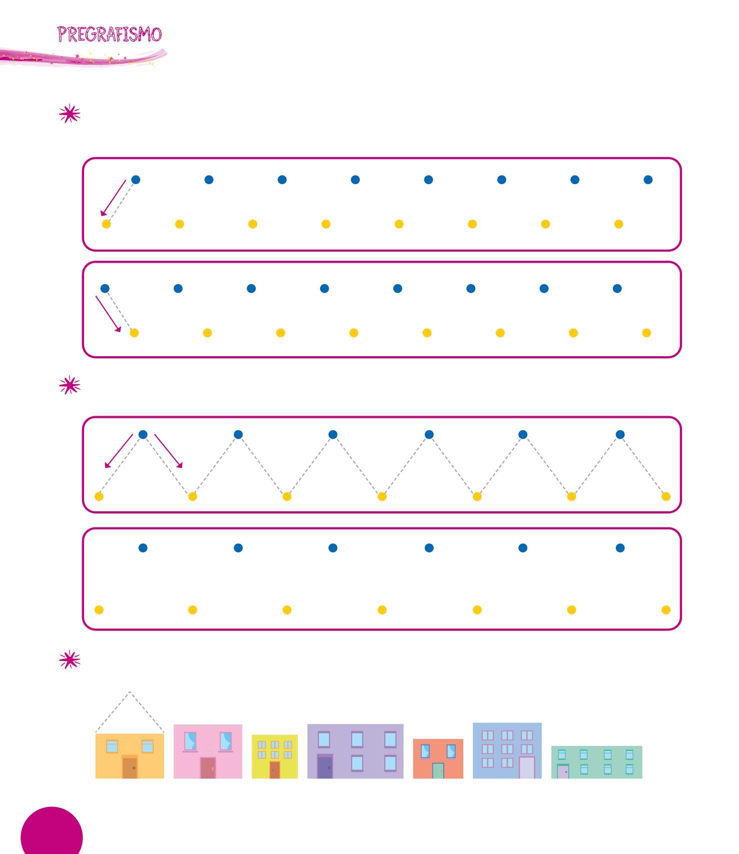 RIPETI L’ESERCIZIO SOPRA, MA COLLEGA I PUNTI DA SINISTRA A DESTRA. SEGUI LA FRECCIA.