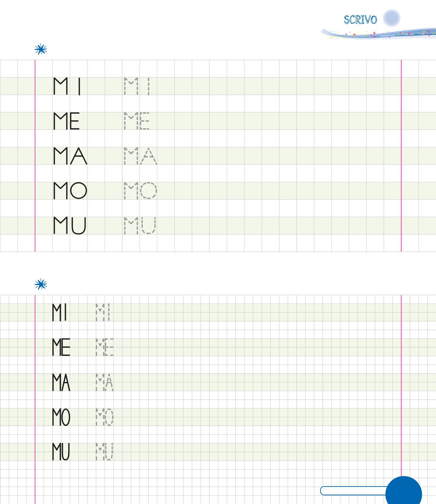 RIPASSA LE M, POI TRACCIANE ALTRE SULLA STACCIONATA. COLORA IL DISEGNO.
