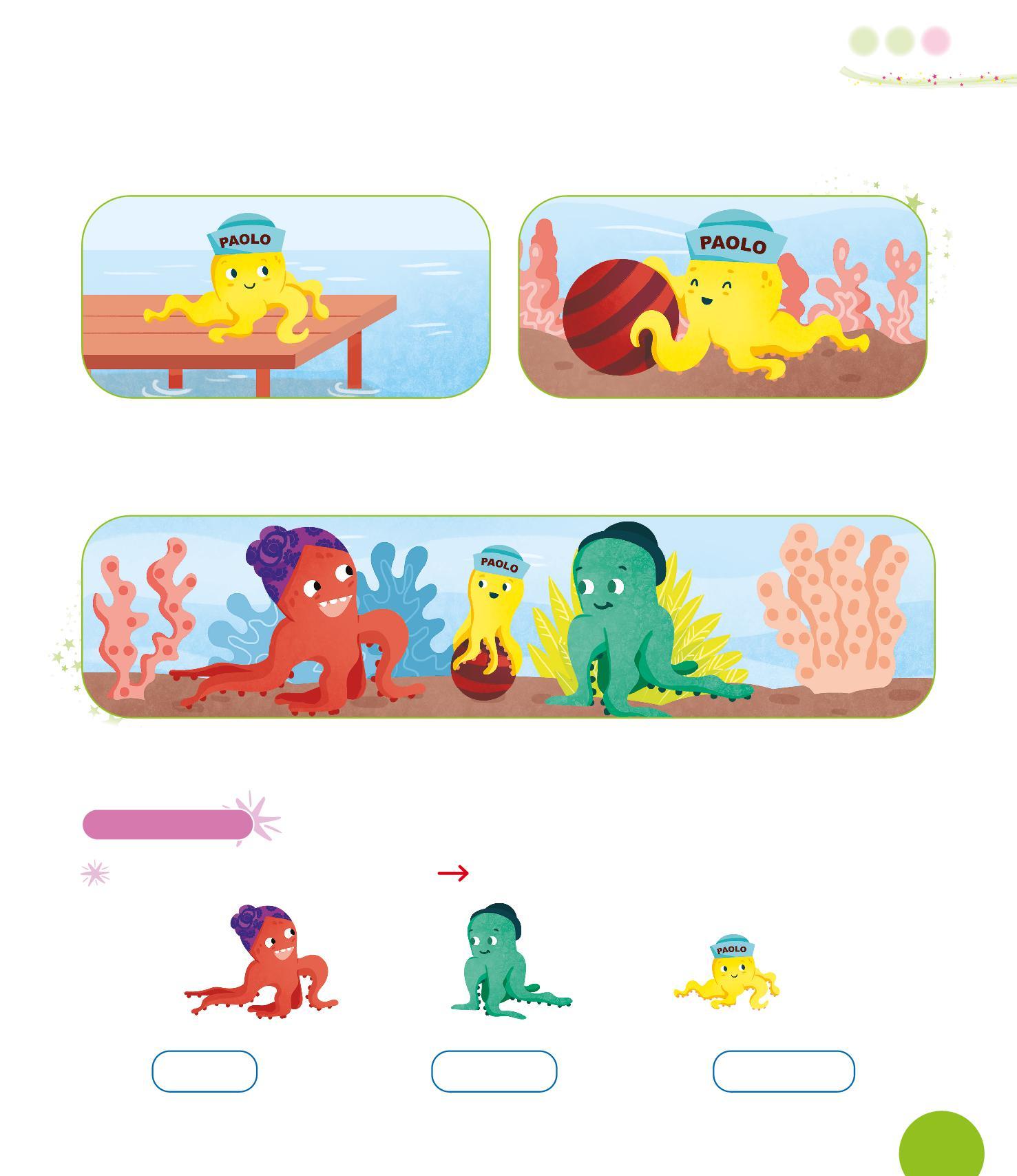 u . Osserva il disegno, poi scrivi l’azione di ogni personaggio.