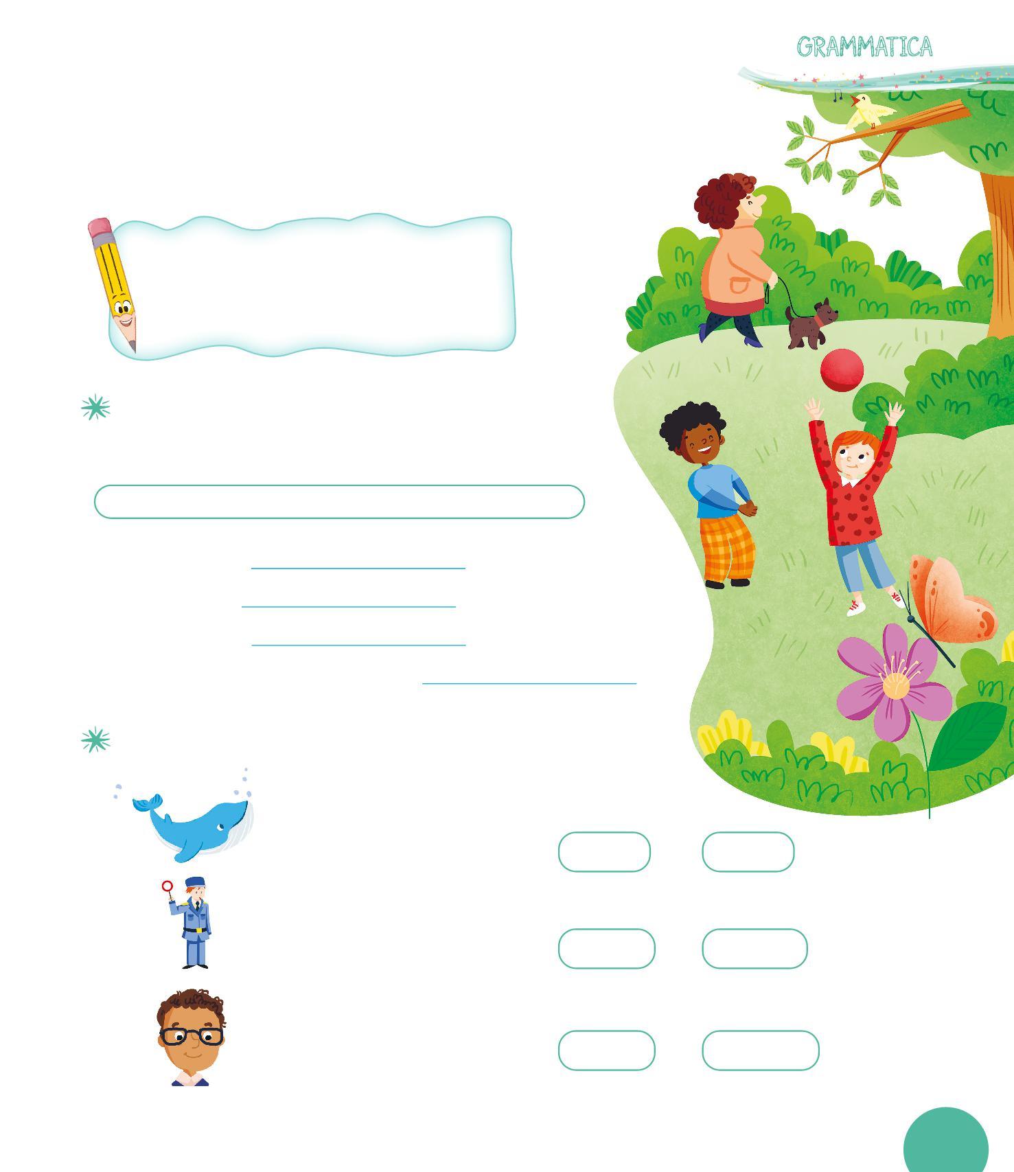 Osserva il disegno, poi scrivi nei cartellini i nomi delle persone, degli animali e delle cose.