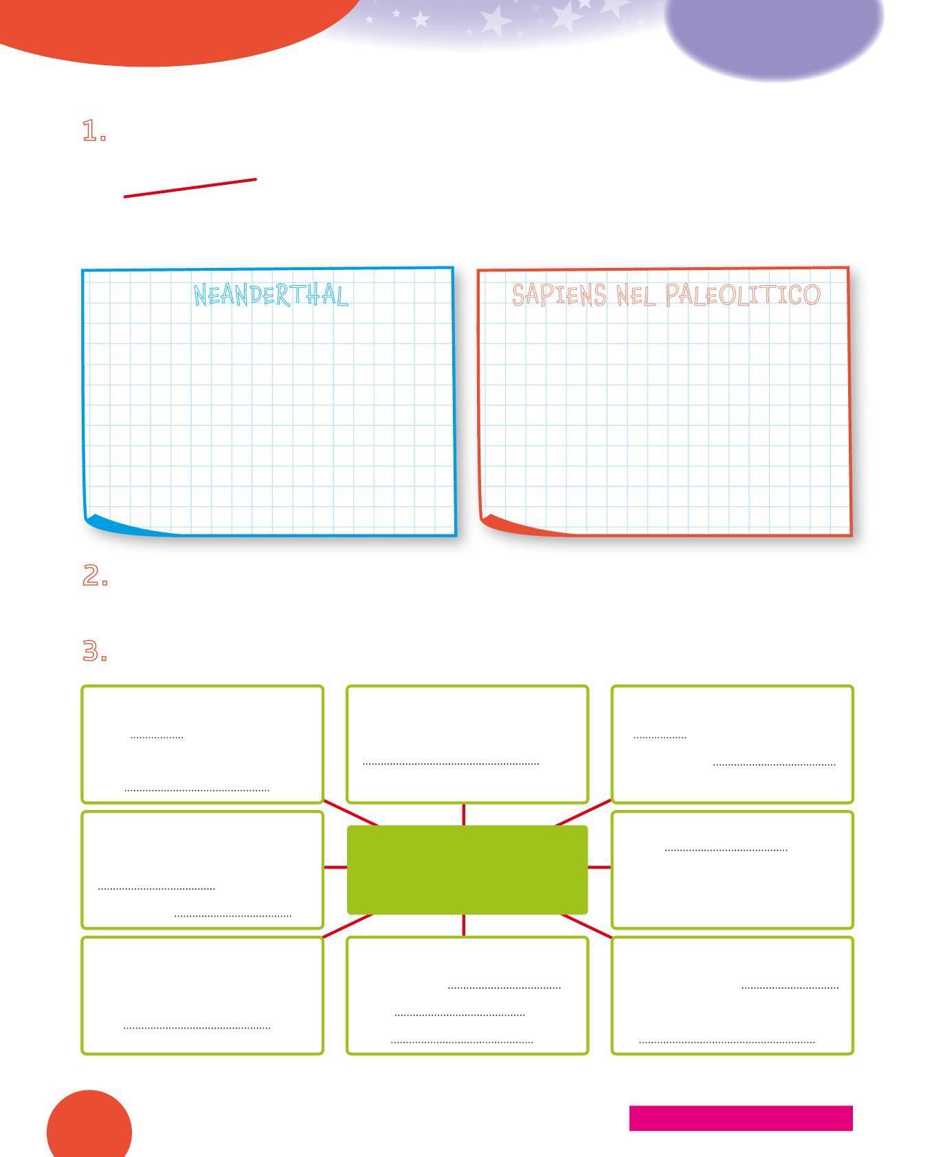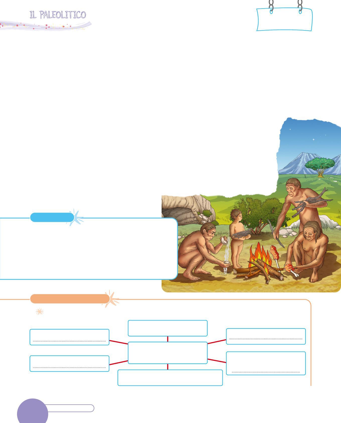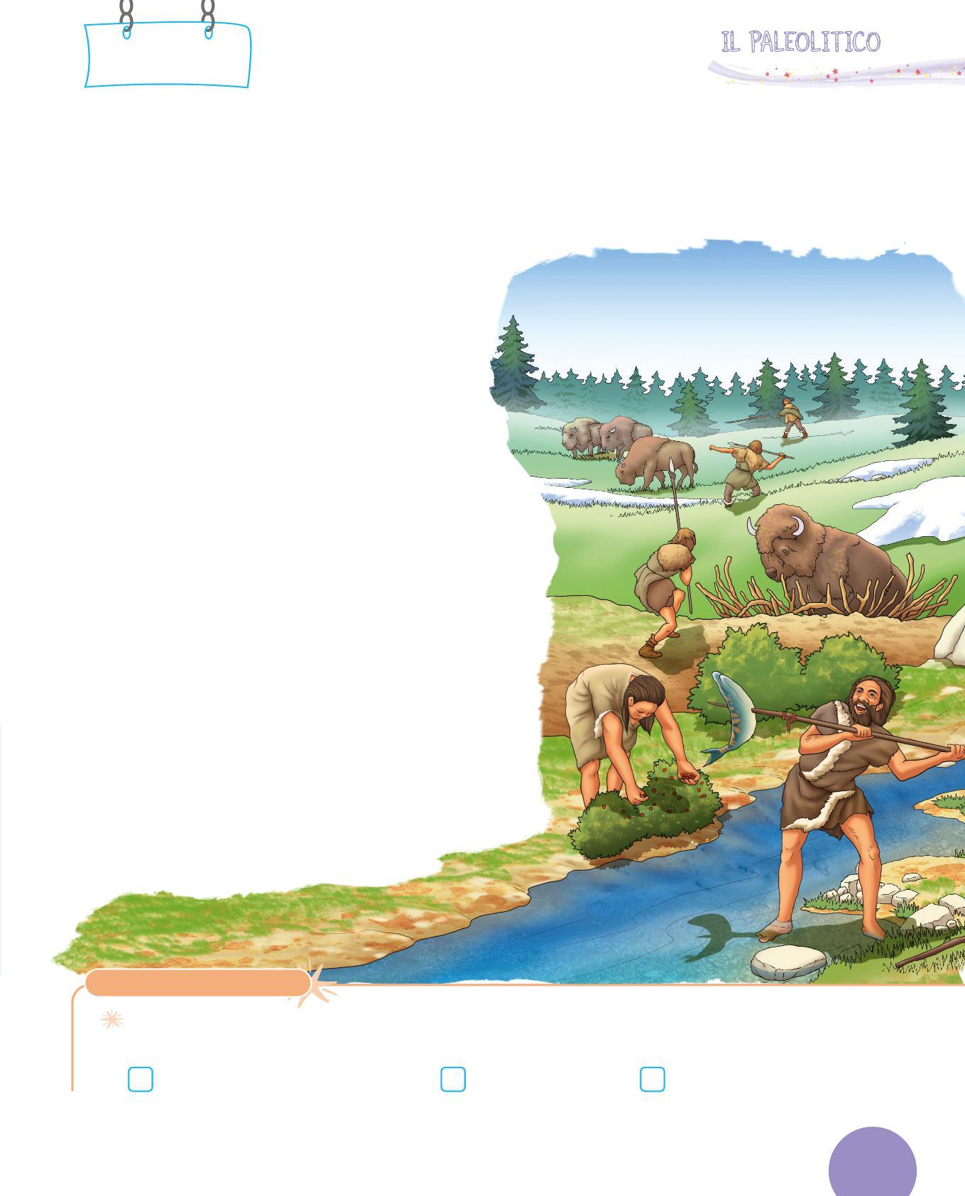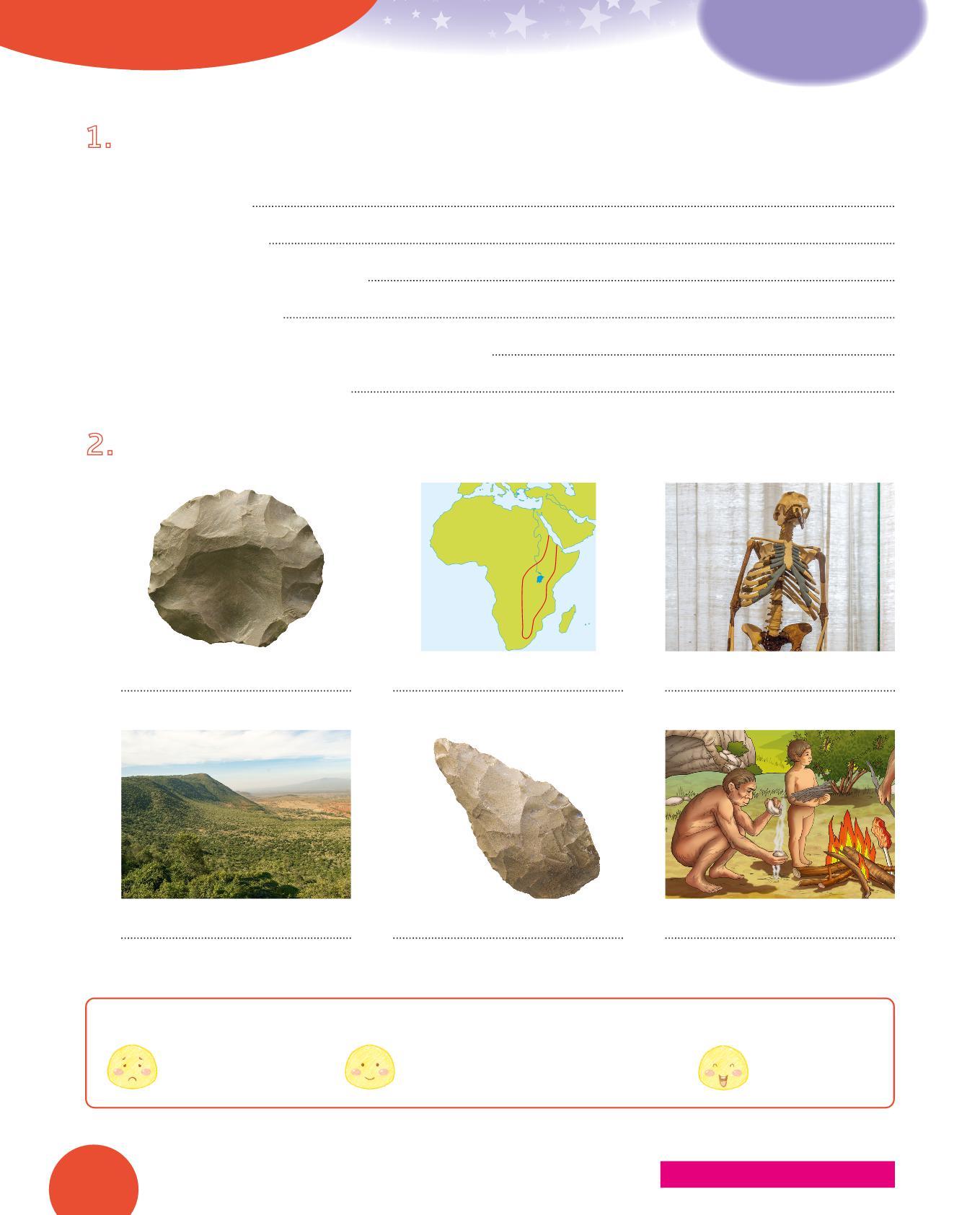 1. Collega con una freccia ogni utensile dei Sapiens al suo uso. Poi osserva i disegni e scrivi sotto con quale materiale era realizzato. Segui l’esempio.