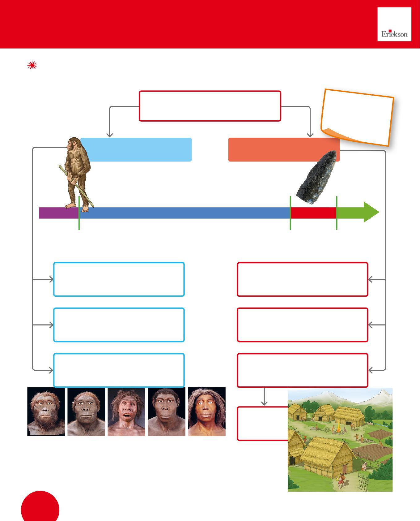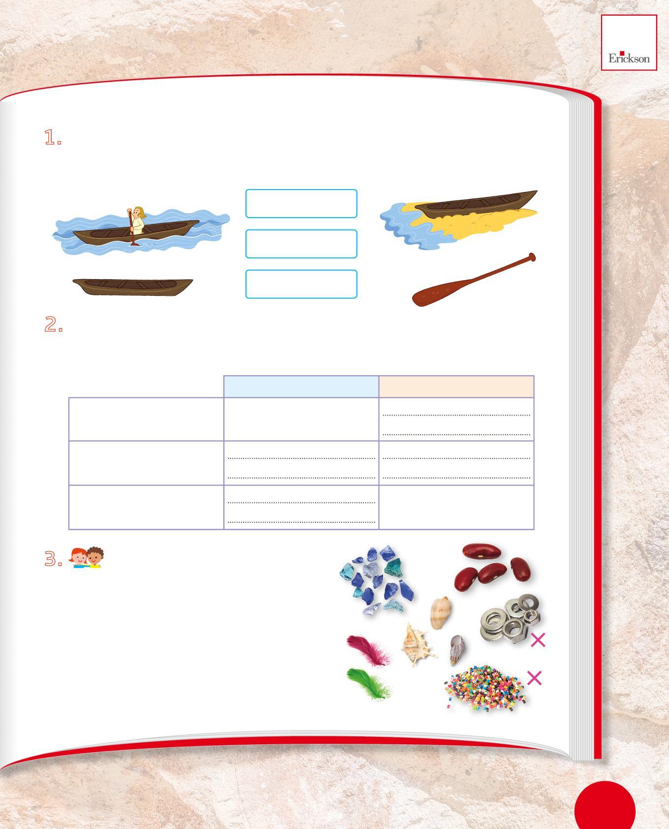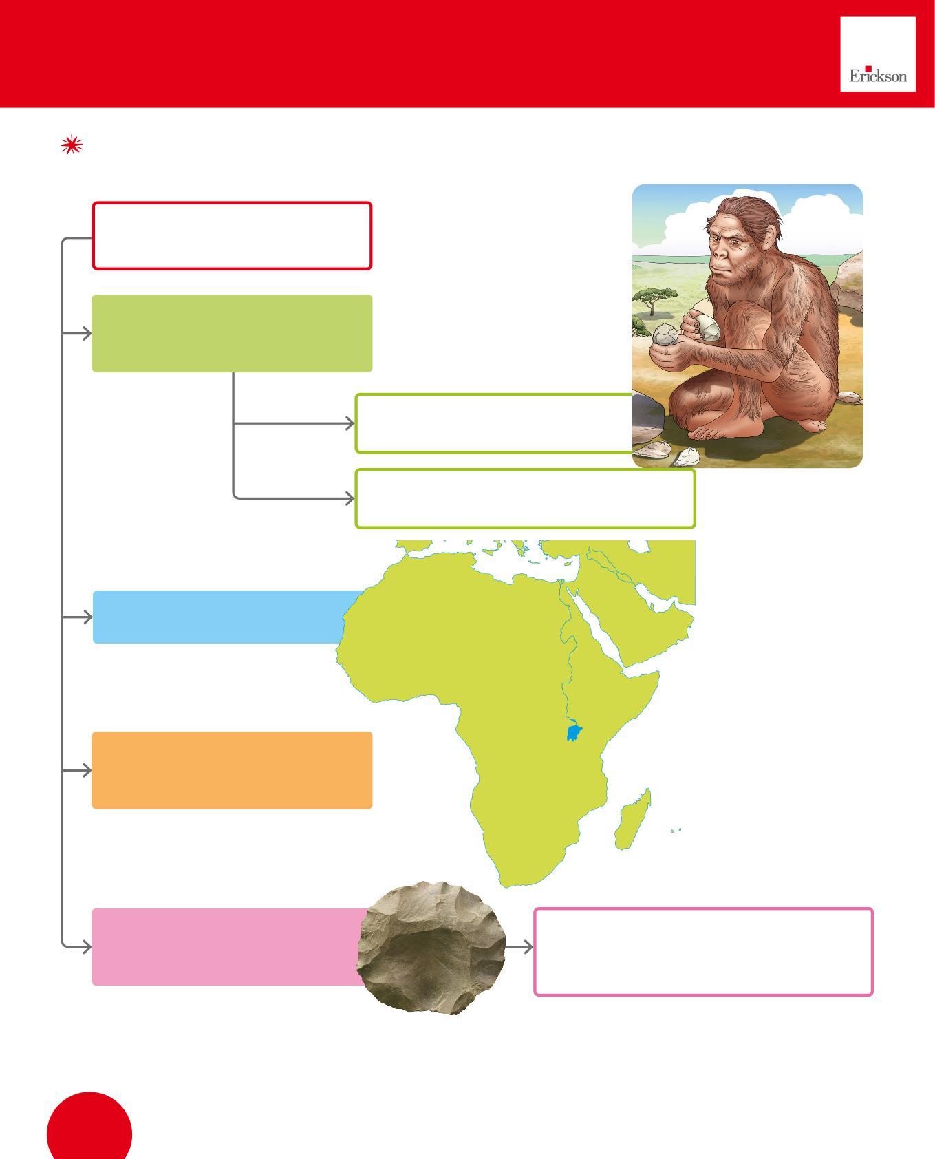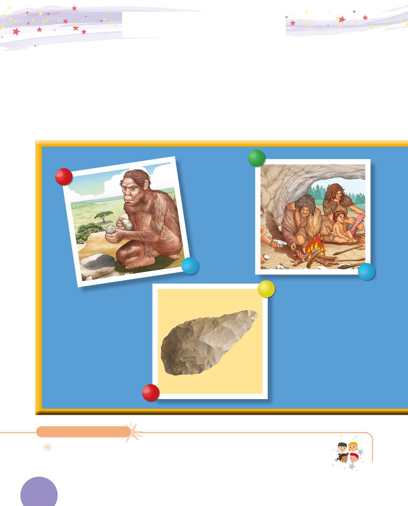 1. Collega con una freccia ogni utensile dei Sapiens al suo uso. Poi osserva i disegni e scrivi sotto con quale materiale era realizzato. Segui l’esempio.