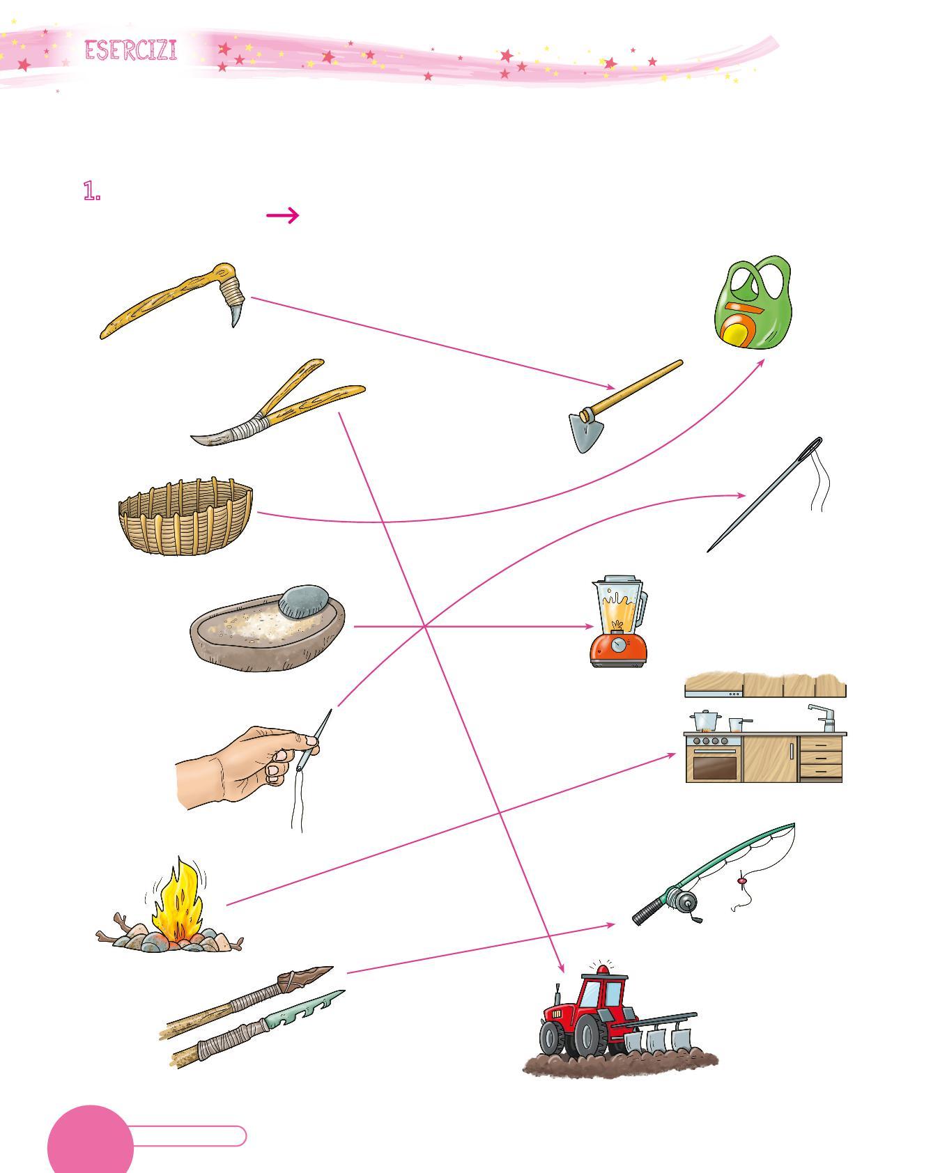 1. Alcuni oggetti moderni hanno “antenati” preistorici. Collega con una gli utensili preistorici agli utensili moderni.