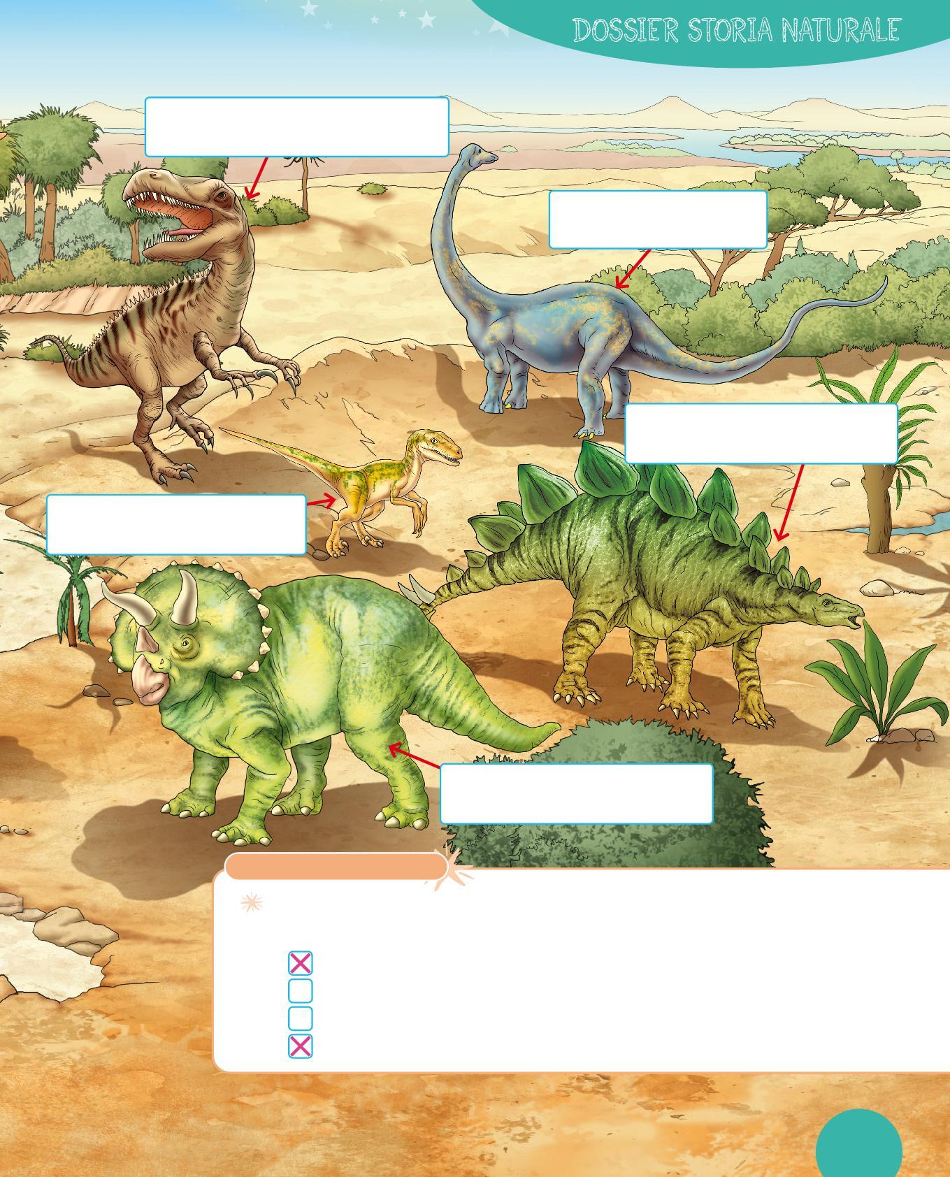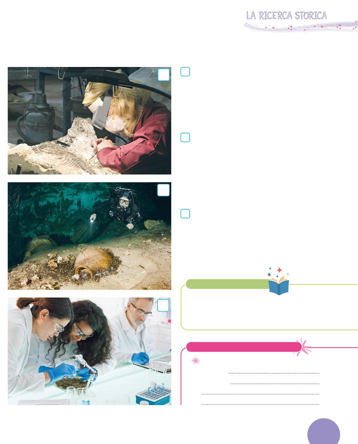 5 La paleontologa e il paleontologo studiano i resti fossili di ossa di animali molto antichi, vissuti quando ancora l’essere umano non esisteva. Gran parte degli animali studiati da questi esperti non esistono più sulla Terra. I più famosi sono i dinosauri.
