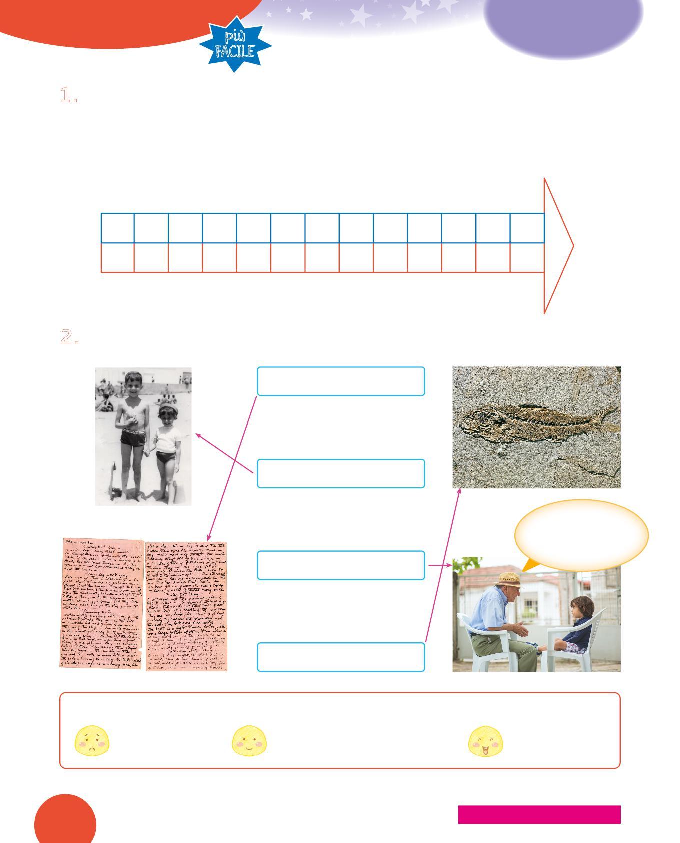 La linea del tempo può rappresentare tempi brevi, lunghi e anche lunghissimi. Le linee del tempo possono essere suddivise in giorni, mesi, anni, ma anche in tempi molto lunghi come: decenni, secoli, millenni, milioni di anni! Pensa, per esempio, a quanto può essere breve la linea del tempo della vita di un essere umano rispetto a quella della storia della Terra.