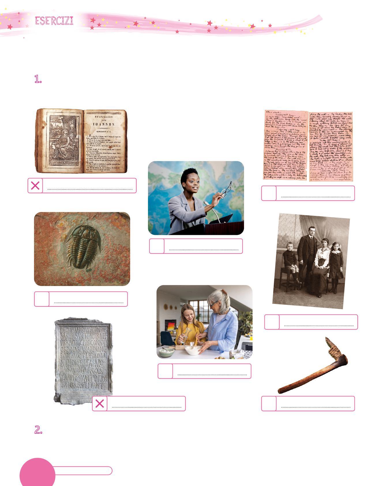 2. SCELTA DELLE FONTI - Osserva le immagini e gli oggetti che hai trovato e scegli quelli che possono darti delle informazioni utili.