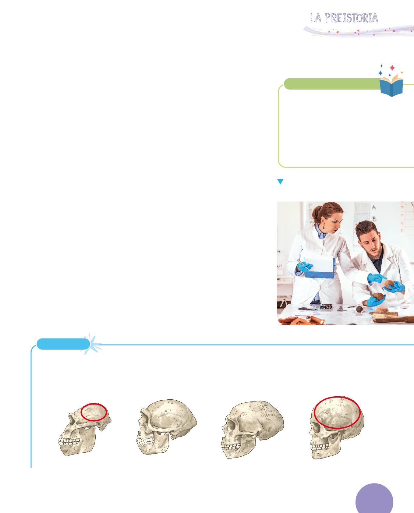 4 L’archeoantropologa e l’archeoantropologo studiano le ossa umane diventate fossili e cercano di capire a chi appartenevano, se a una femmina o a un maschio, che età aveva, di che cosa si nutriva.