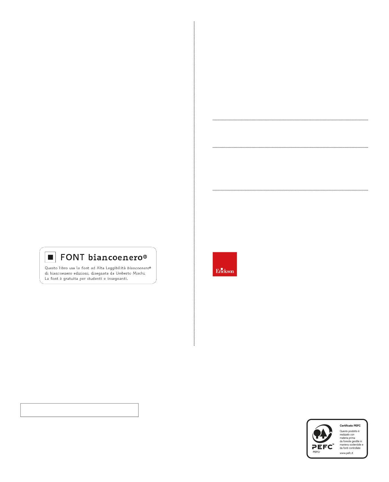 Testi in formato accessibile. I testi pubblicati dall’editore sono disponibili in formato accessibile e possono essere richiesti a: Biblioteca per i Ciechi Regina Margherita di Monza (http://www.bibliotecaciechi.it) o Biblioteca digitale dell’Associazione Italiana Dislessia “Giacomo Venuti” (http://www.libroaid.it).