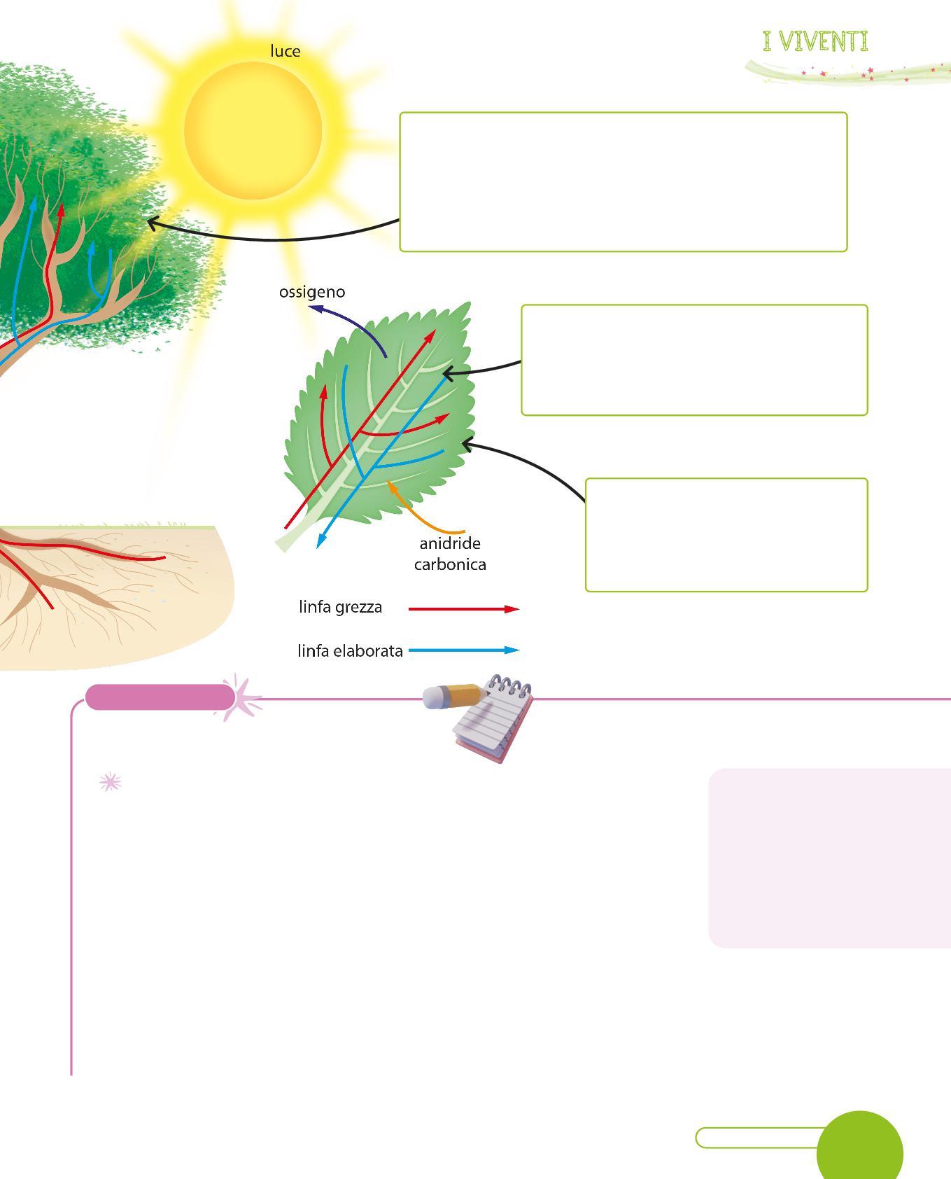 2. Inserisci nelle caselle i nomi delle parti della pianta e scrivi la funzione di ciascuna.