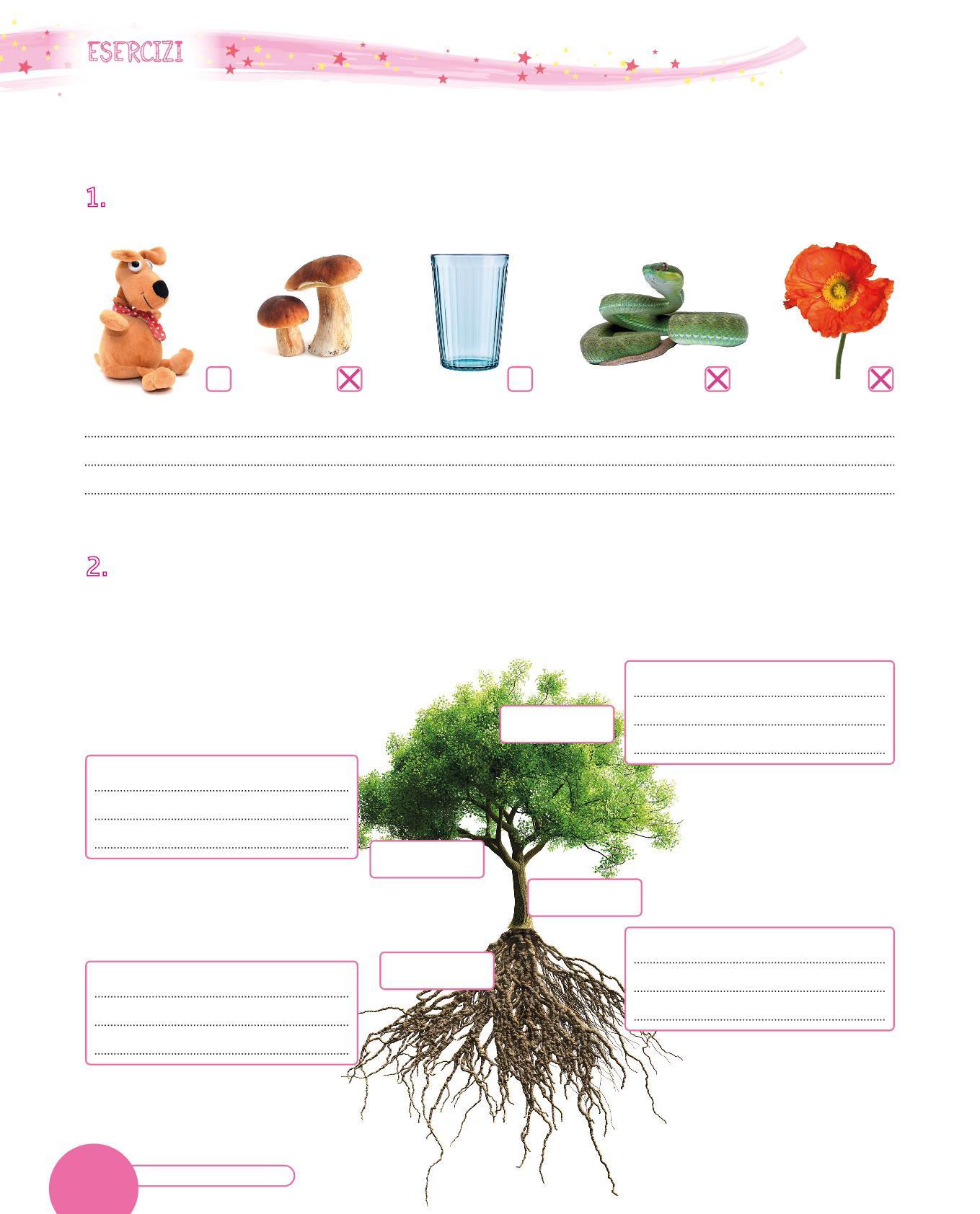 1. Osserva le immagini e indica con una X gli elementi “viventi”. Poi motiva la tua scelta.