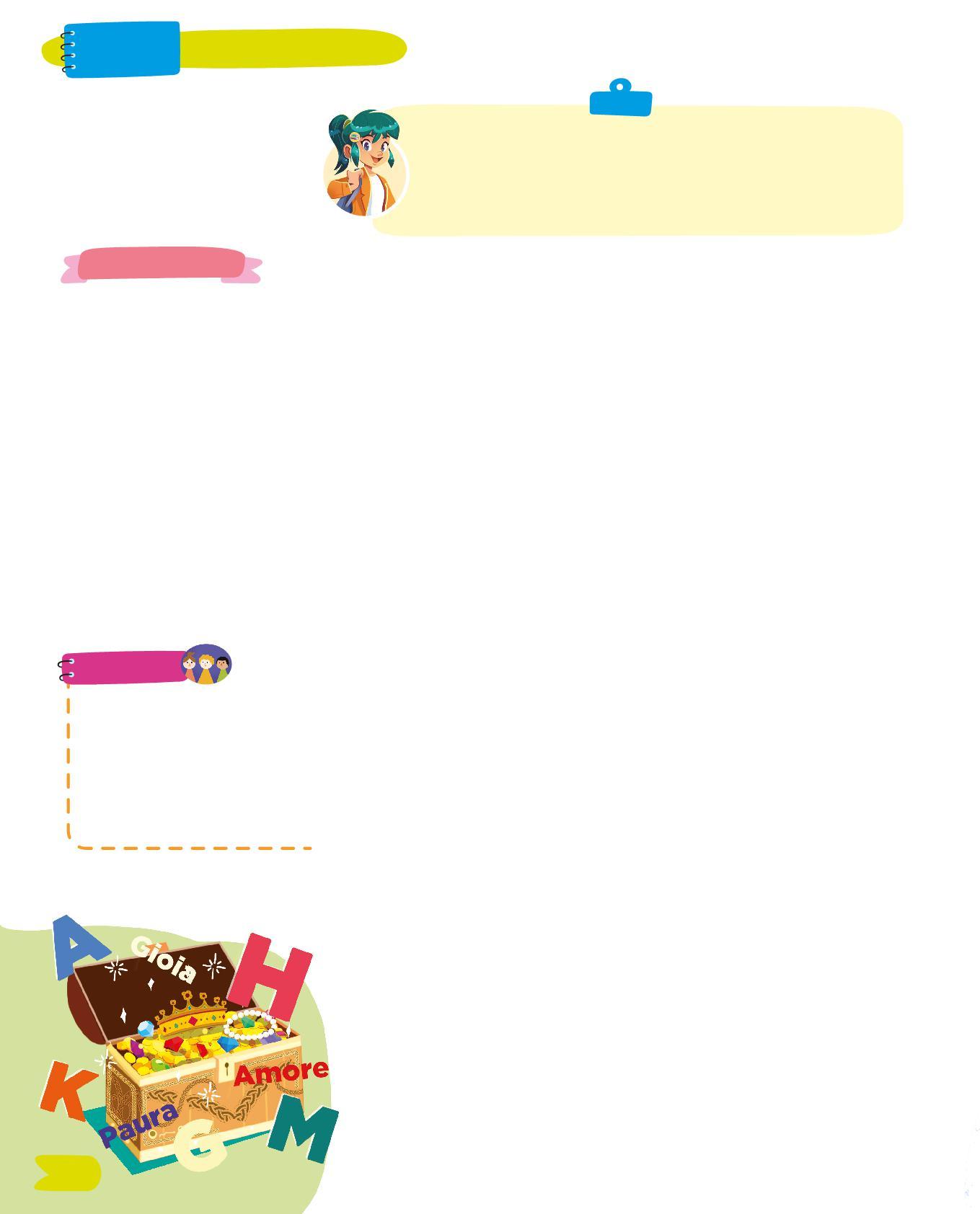 Nel tuo libro delle Letture troverai dei rimandi al Taccuino per esprimersi, un quaderno a parte dove troverai tante attività di scrittura creativa e spunti di riflessione per imparare a esprimersi, per scrivere e parlare.