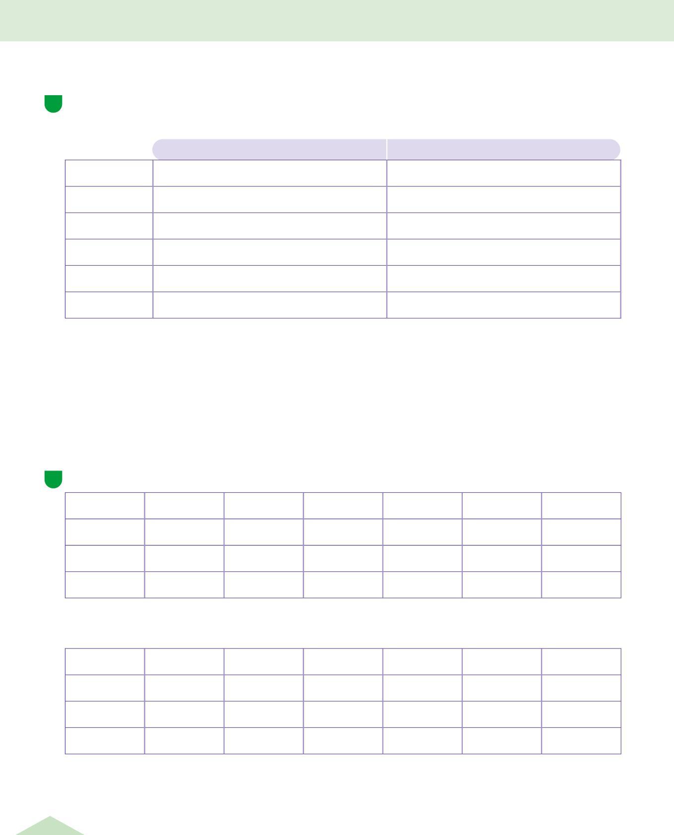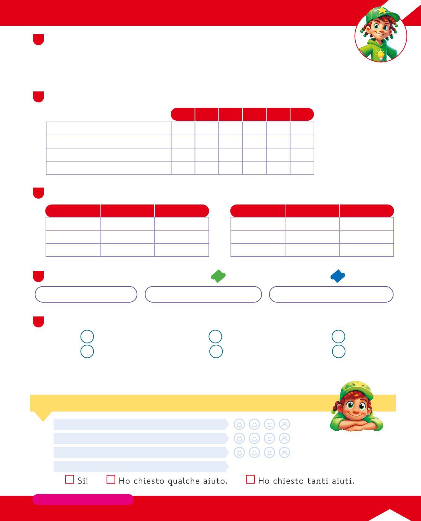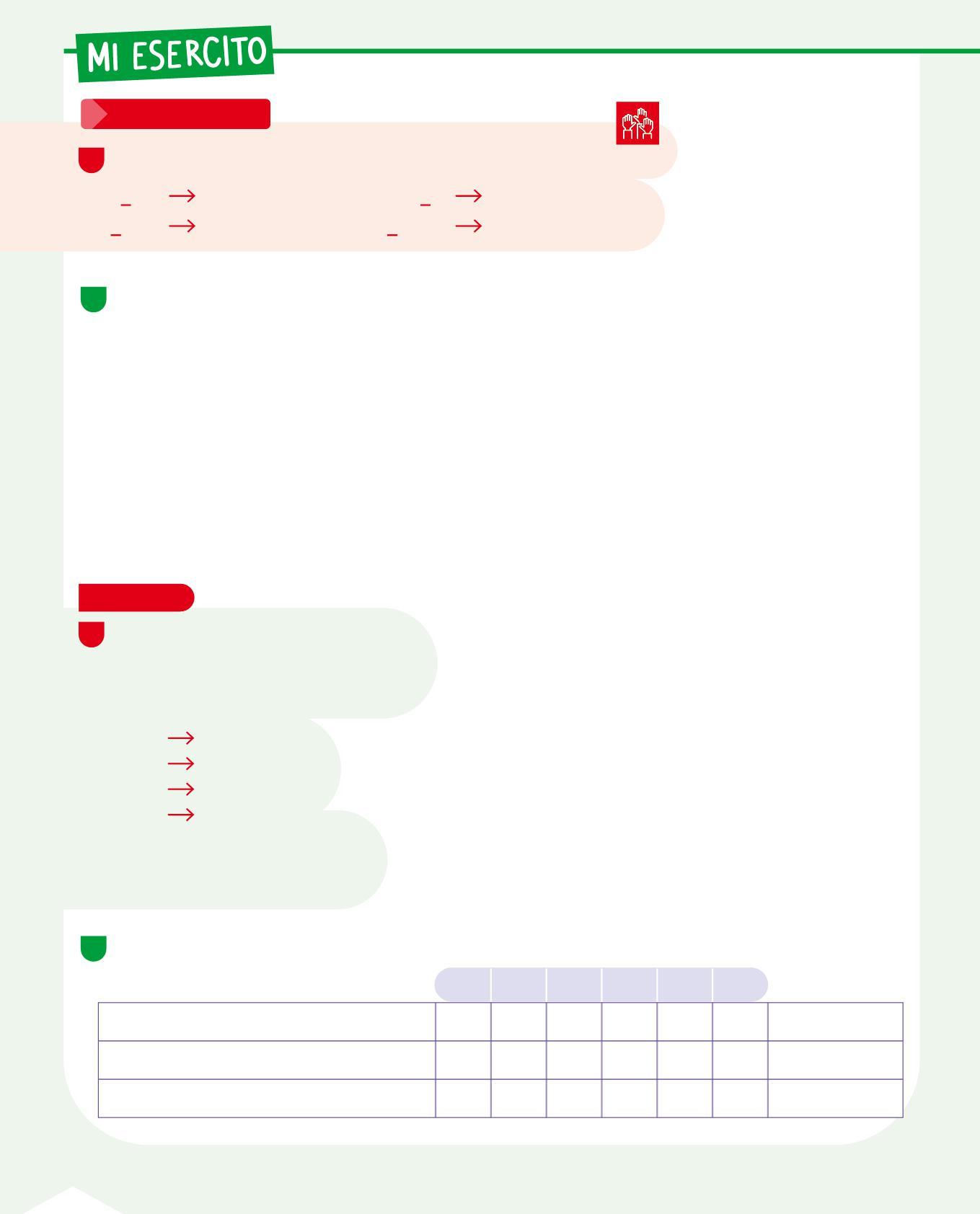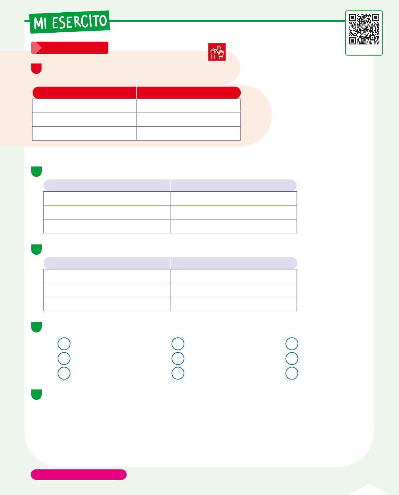 • Osserva le tabelle sopra e completa scrivendo il numero dell'itinerario giusto per ogni voce della tabella.