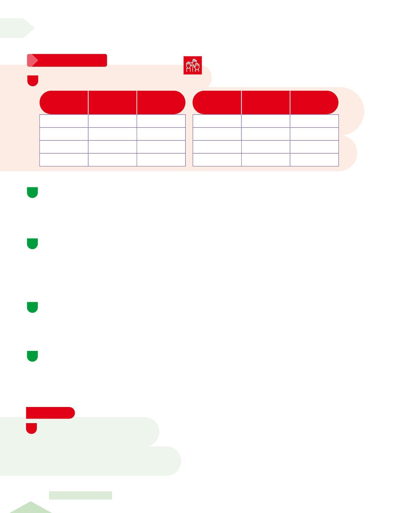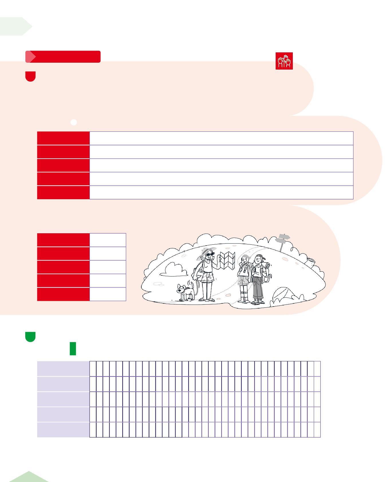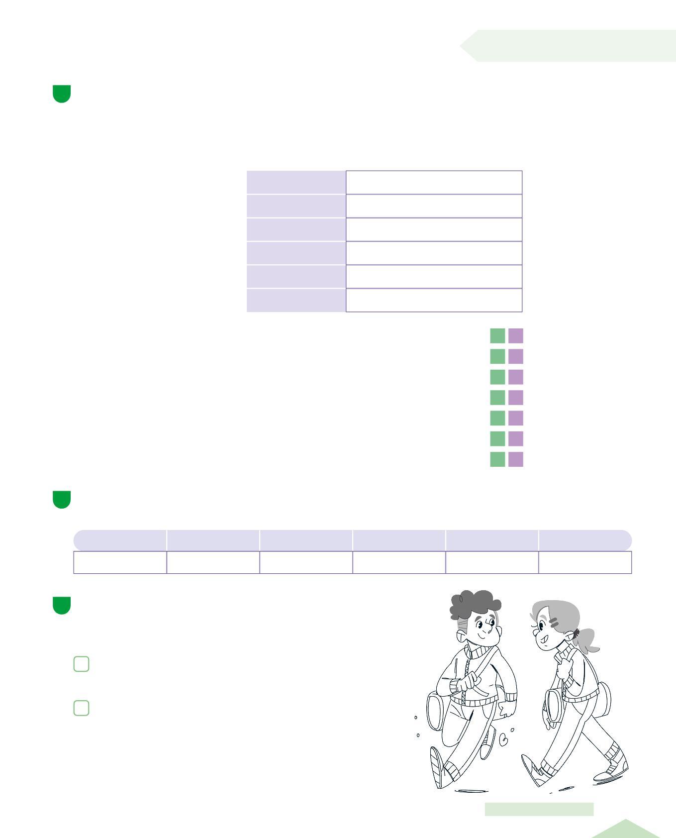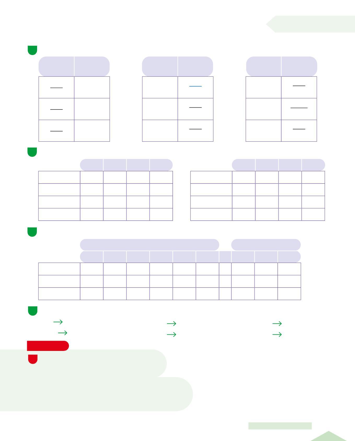 • Osserva le tabelle sopra e completa scrivendo il numero dell'itinerario giusto per ogni voce della tabella.