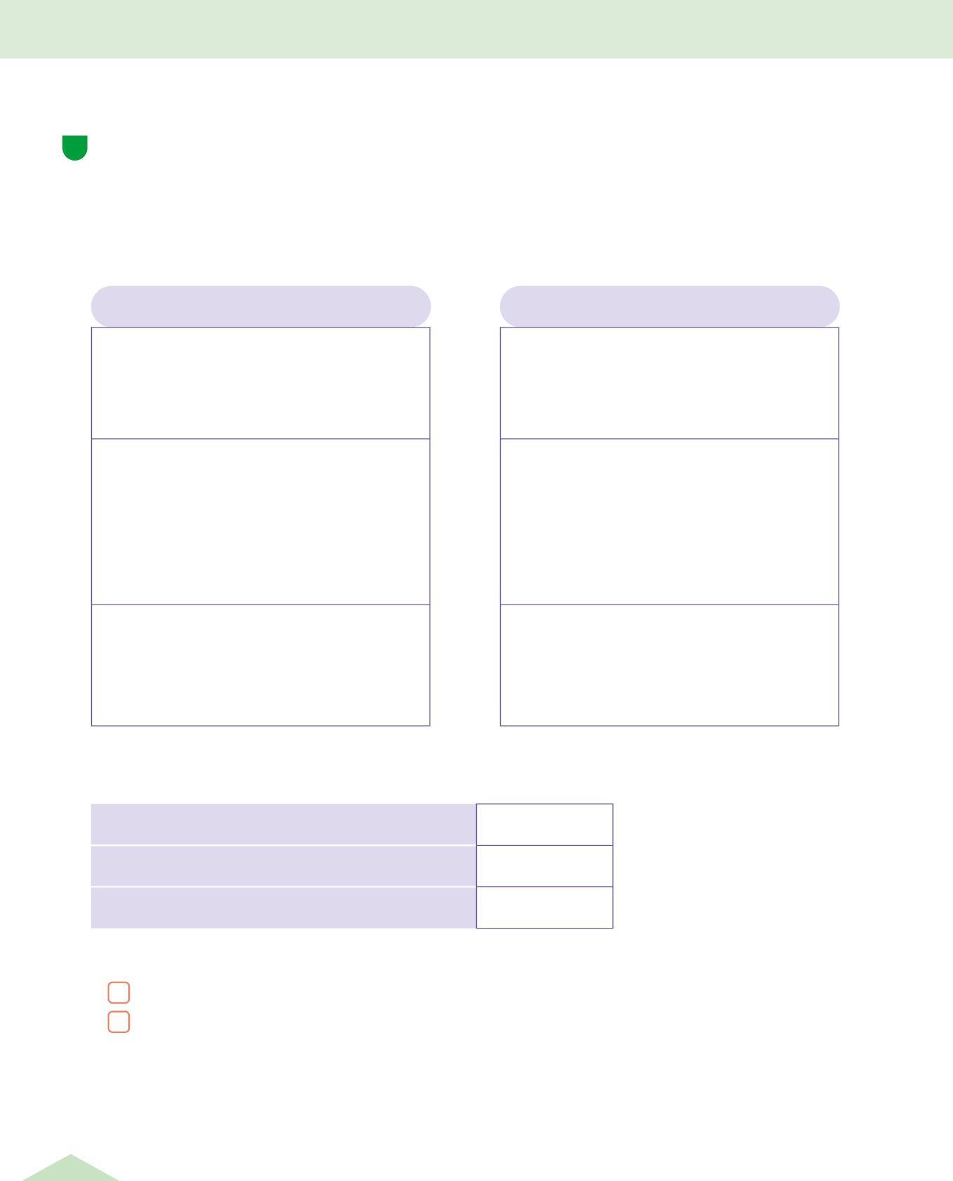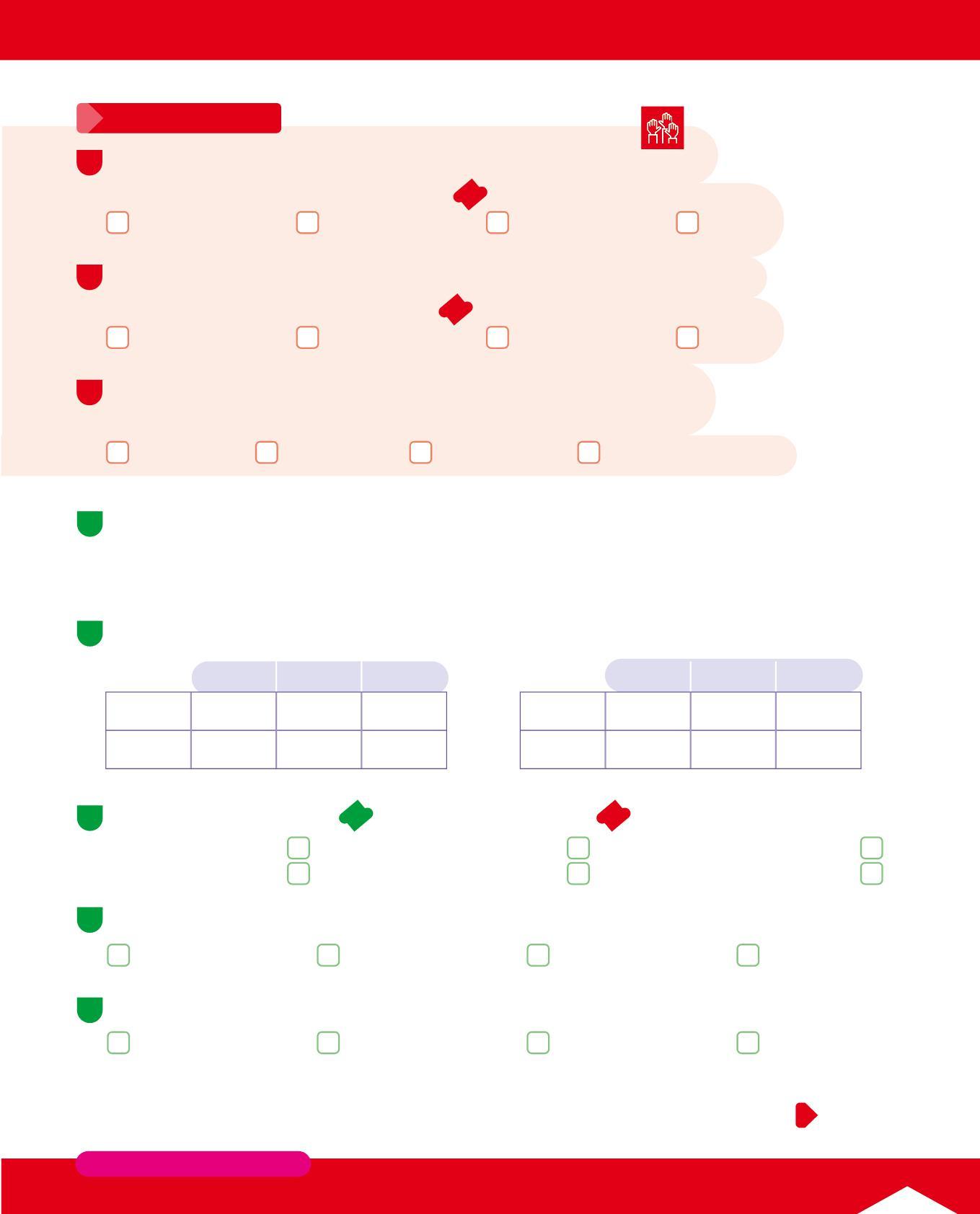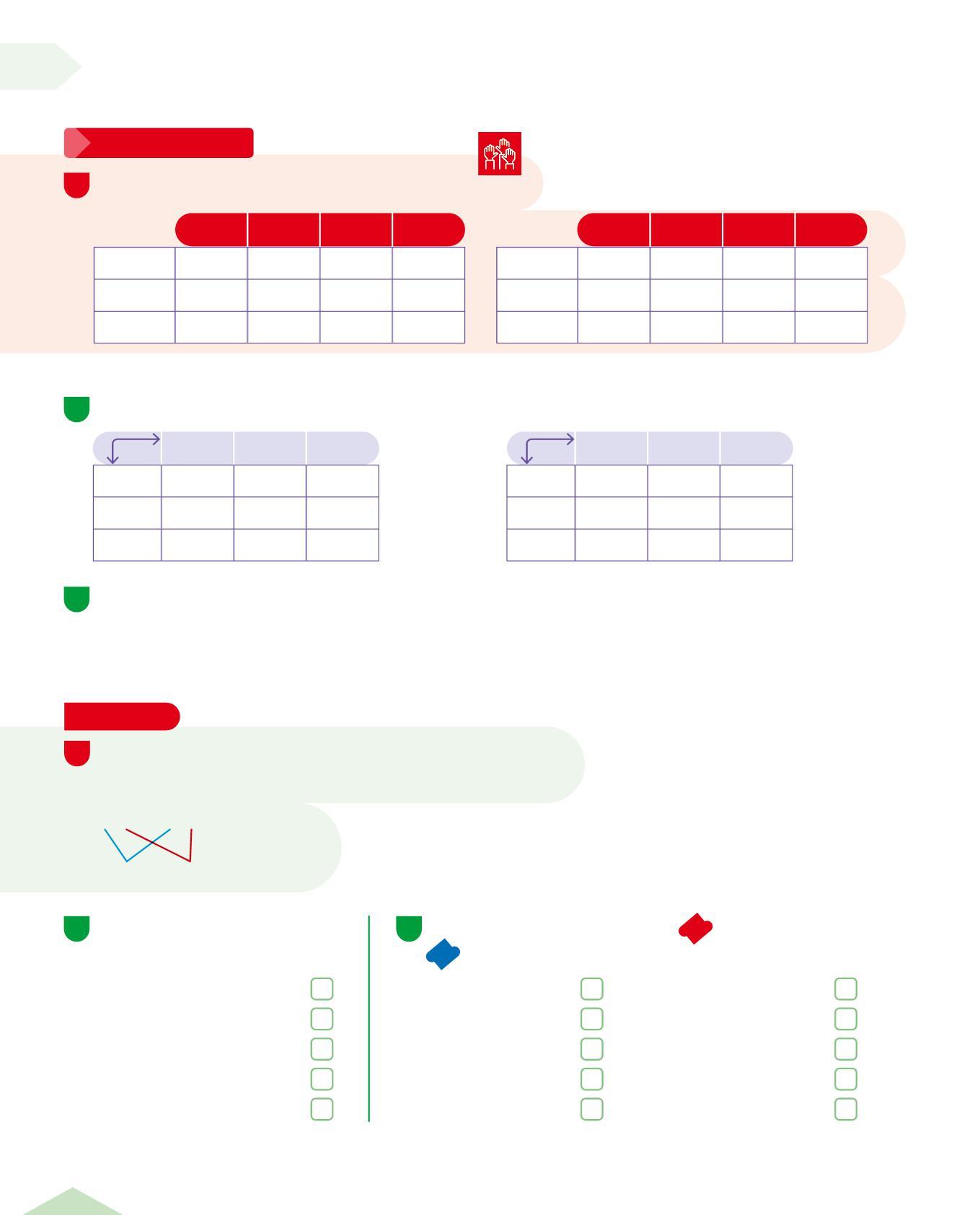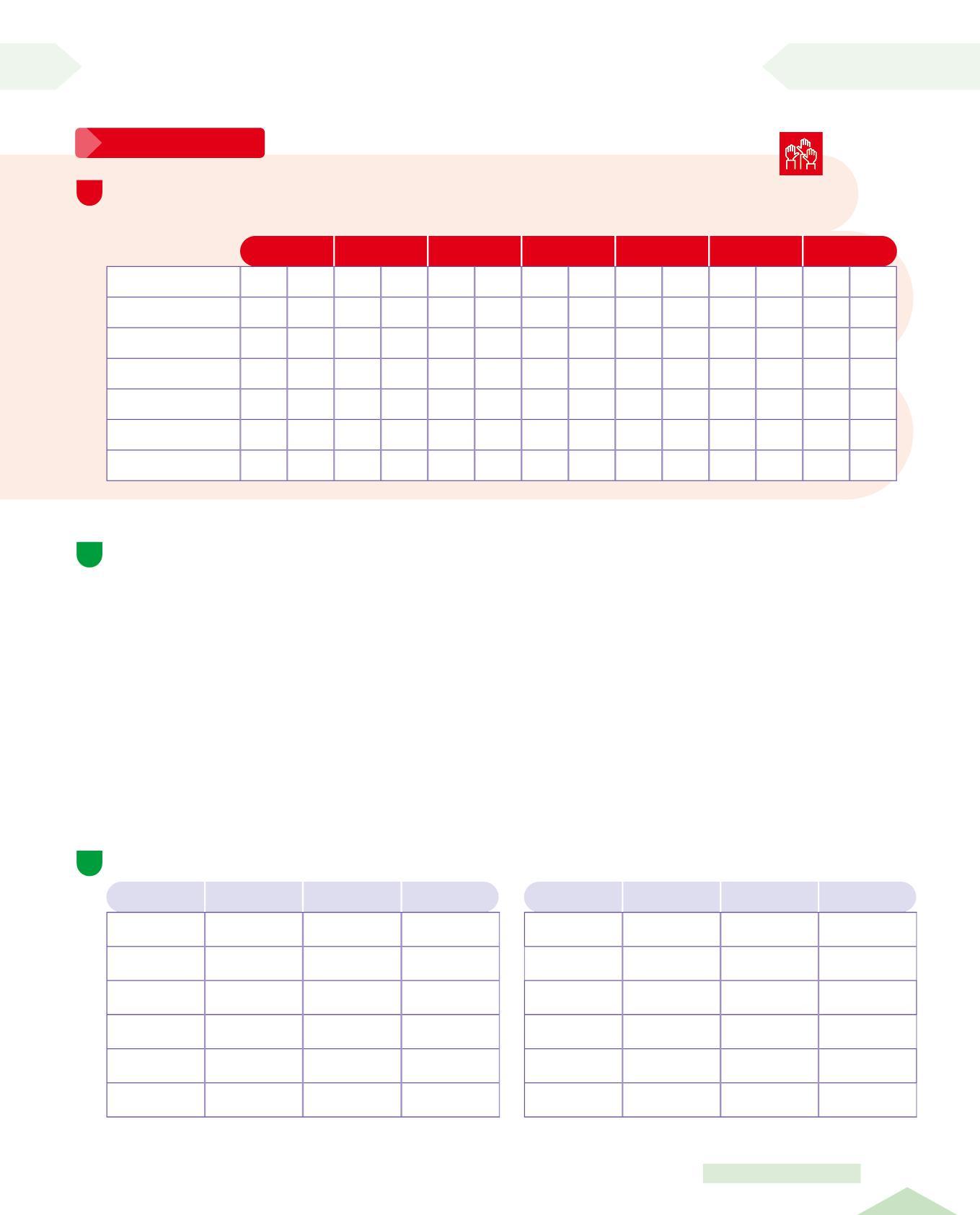 • Osserva le tabelle sopra e completa scrivendo il numero dell'itinerario giusto per ogni voce della tabella.