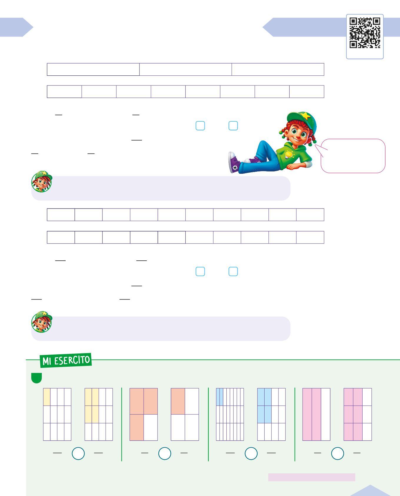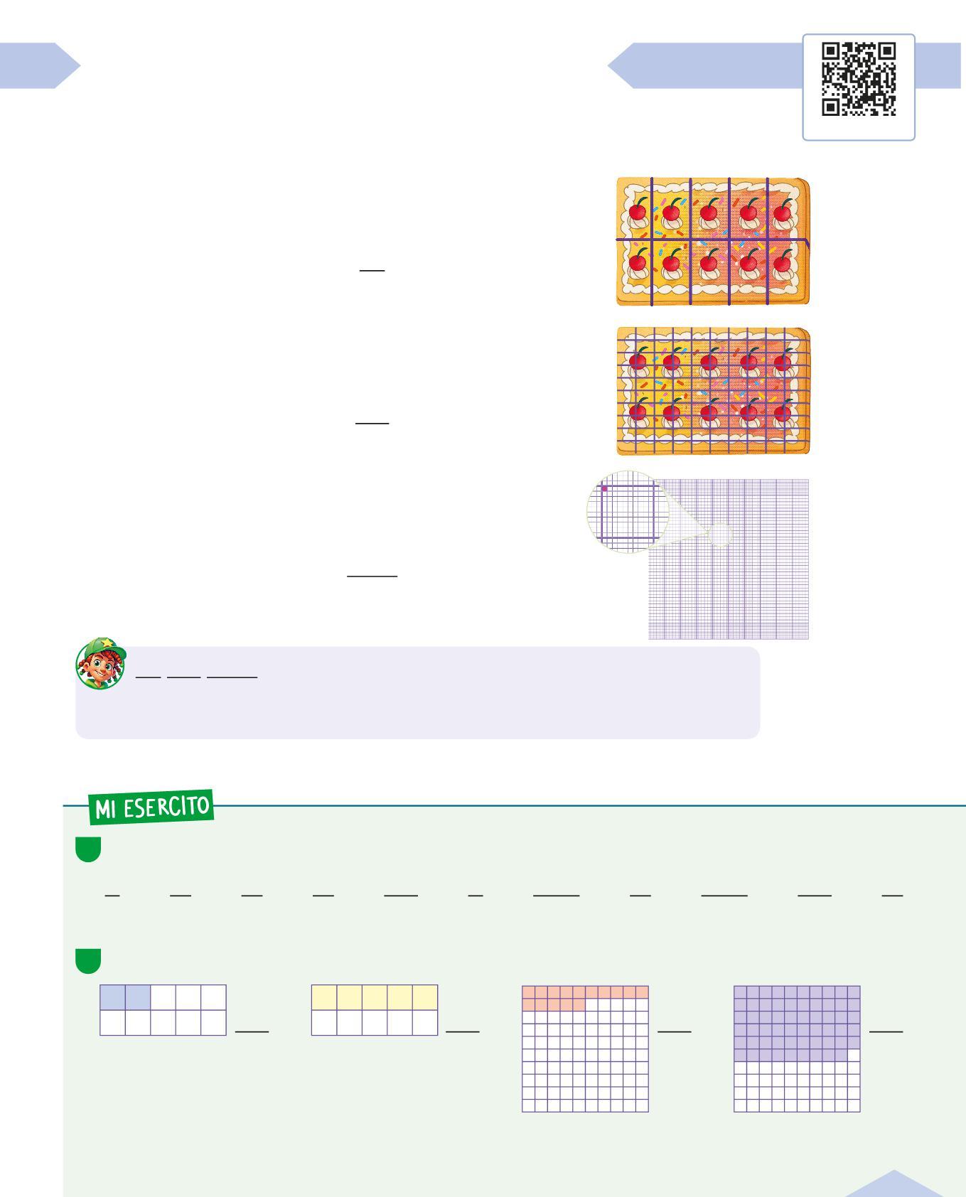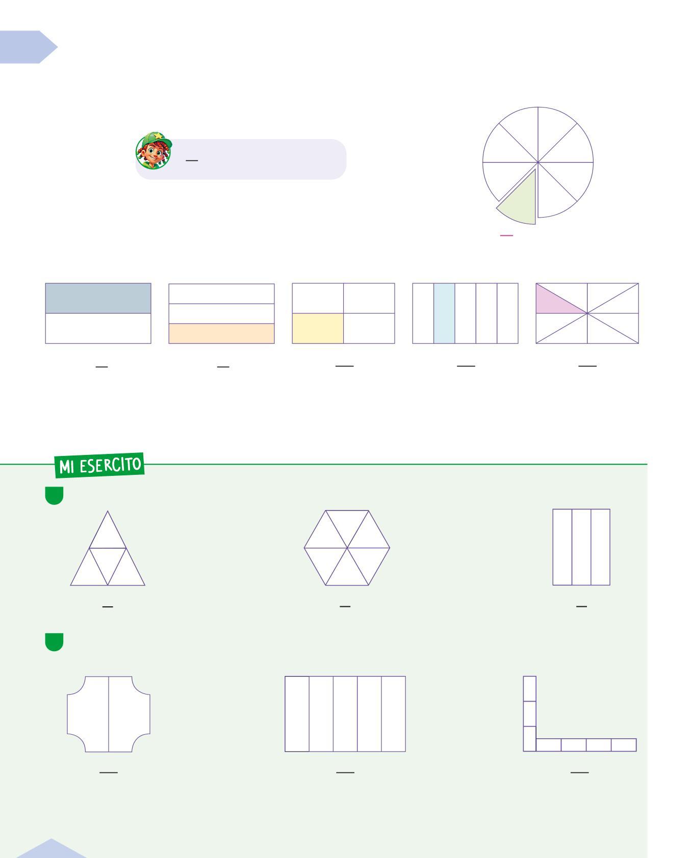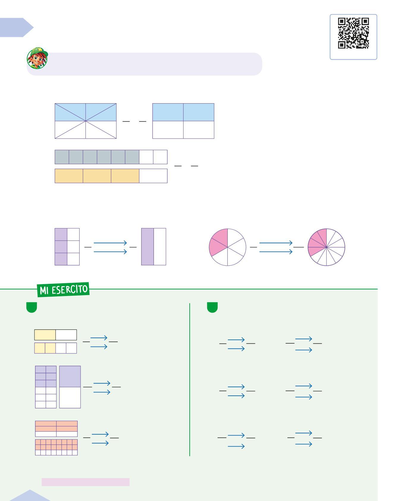 A1 Indica con una X a quale frazione corrisponde la parte colorata del rettangolo.