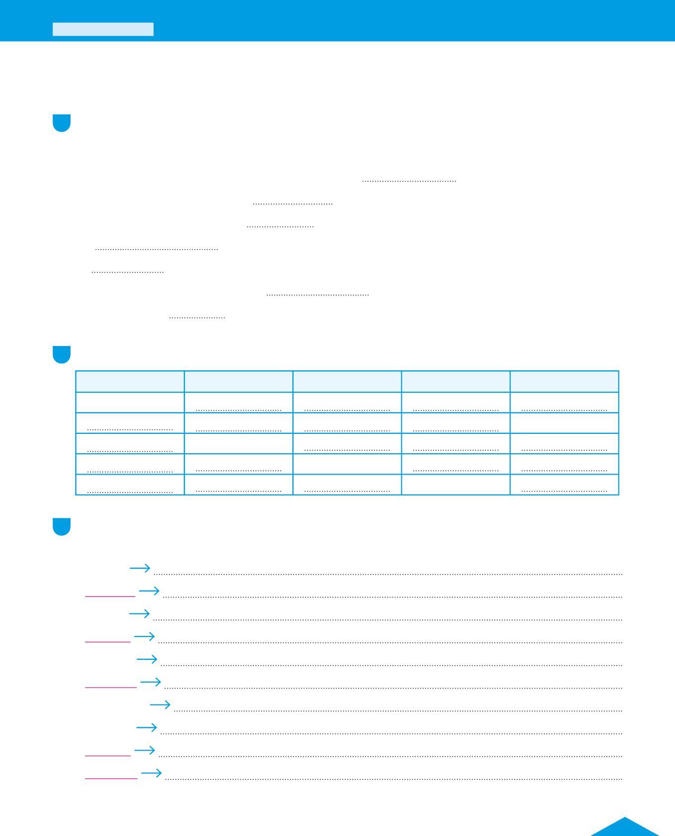 Aiutati con le pagine 52-54 e completa la mappa. Segui gli esempi.