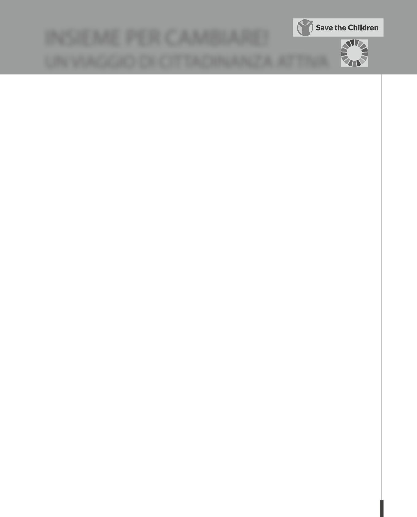 I contenuti valorizzati nella presente pubblicazione nascono dall’esperienza di “Fuoriclasse in Movimento”, la rete di scuole promossa da Save the Children per prevenire la dispersione scolastica. Si ringraziano in particolar modo studenti/esse, docenti, dirigenti e operatori partner che ogni giorno si impegnano per promuovere il diritto alla partecipazione a scuola.