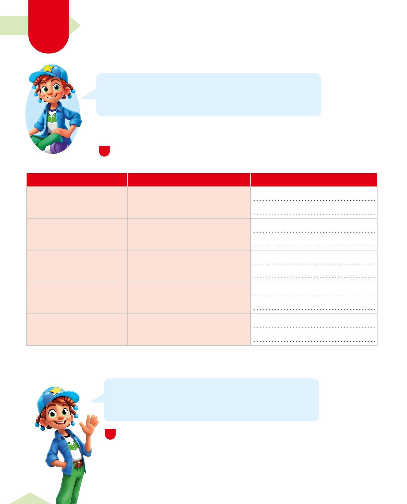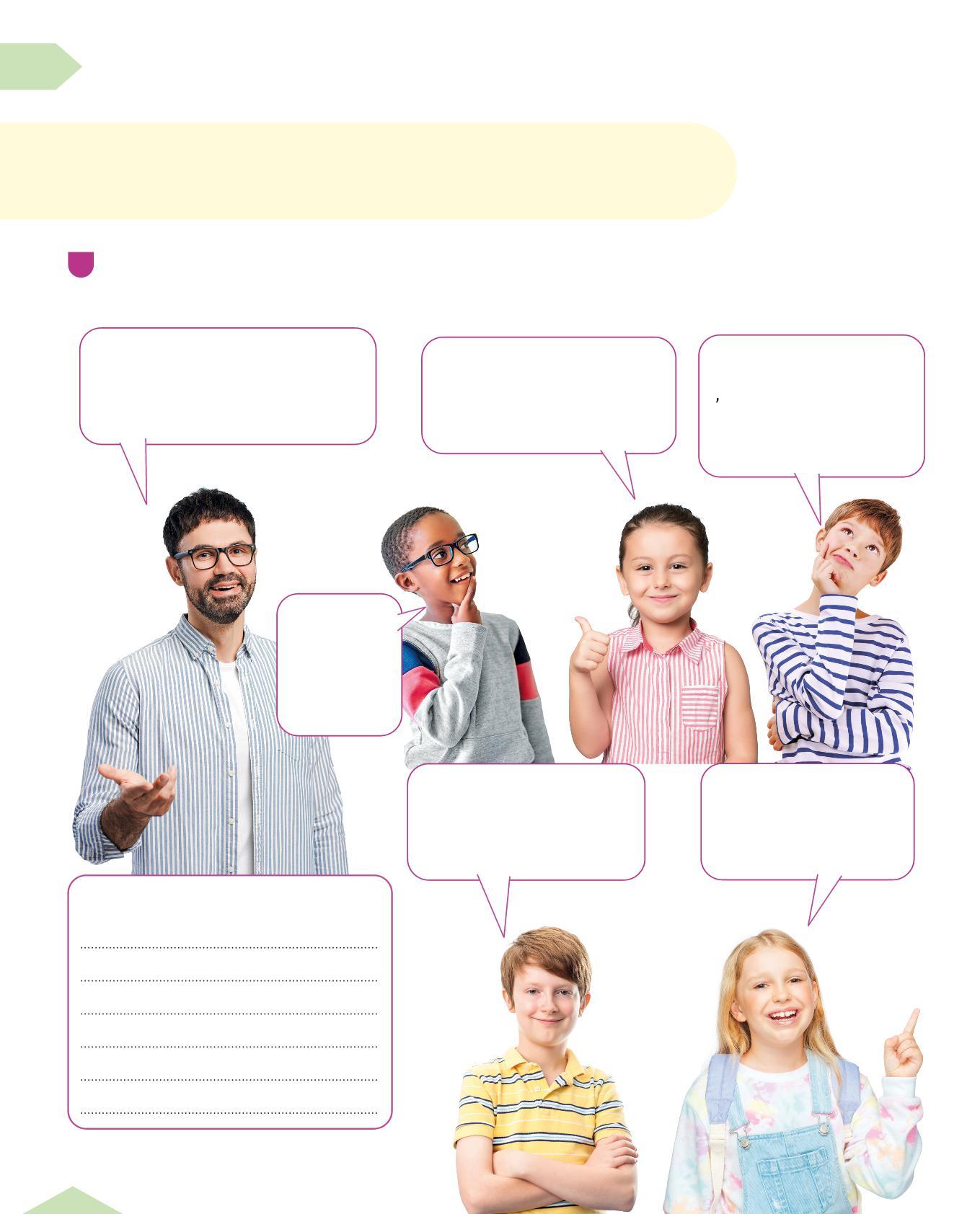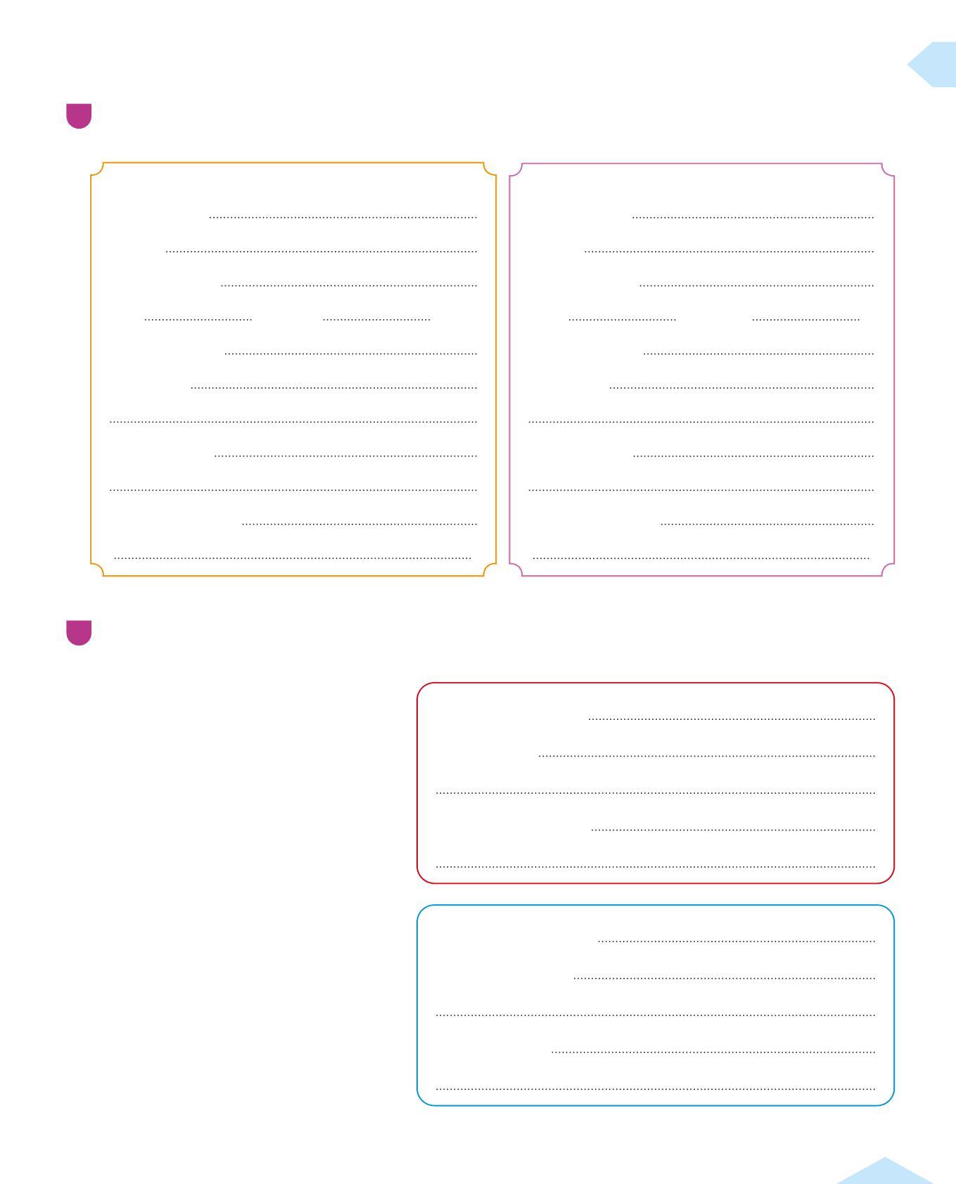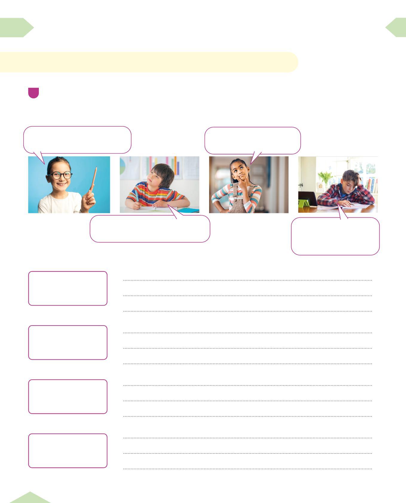 1 Completa i suggerimenti da seguire durante la fase dell’ideazione. Scrivi al posto giusto le riflessioni dei bambini e delle bambine. Poi aggiungi i tuoi consigli.