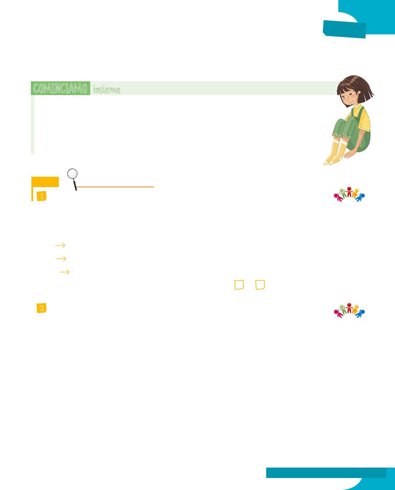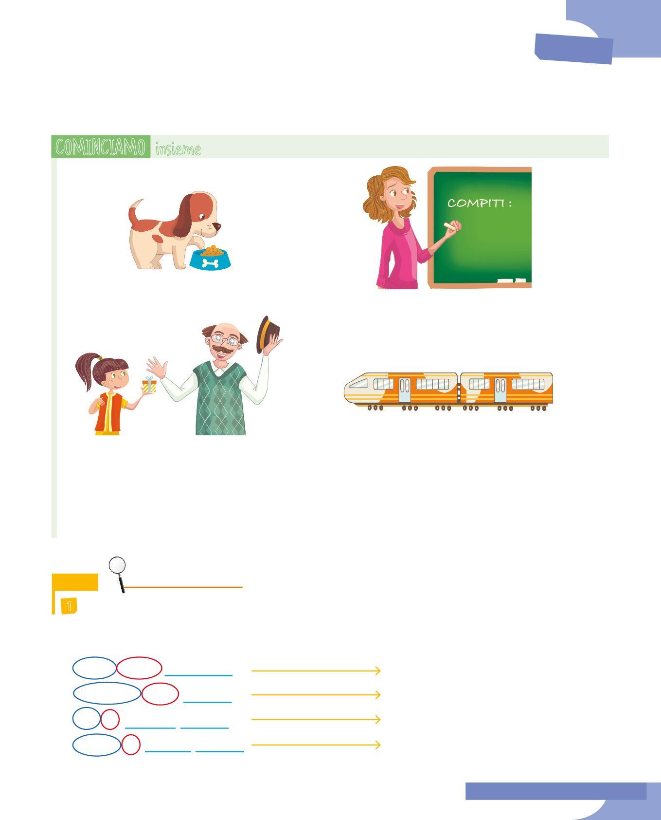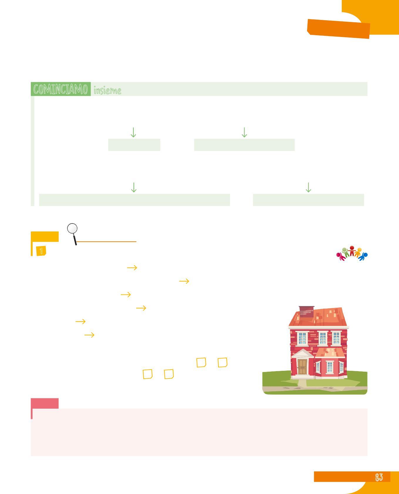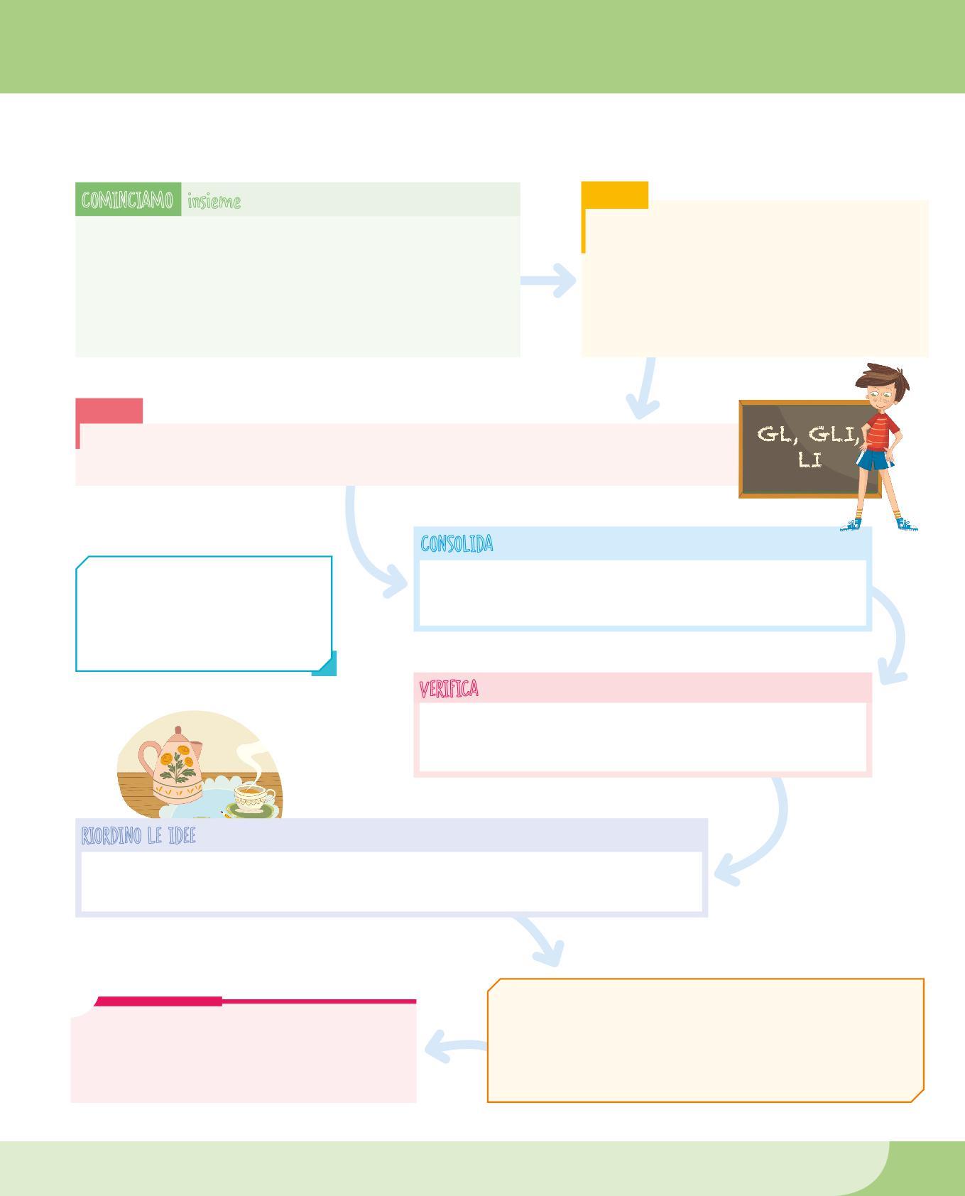La fase di avvio ti presenterà un problema che può riguardare la forma delle parole, la loro funzione, i legami che si creano tra di esse... Qui inizia il tuo lavoro di riflessione, che svolgerai anche con l’aiuto di compagne e compagni e dell’insegnante.