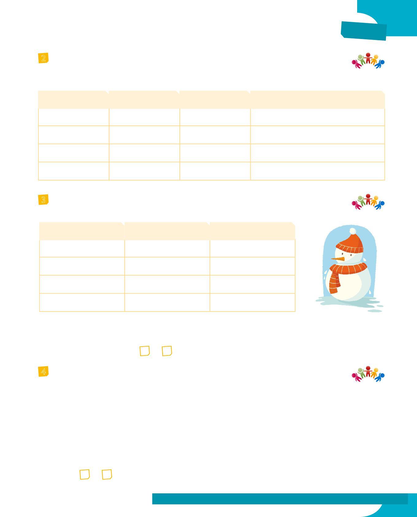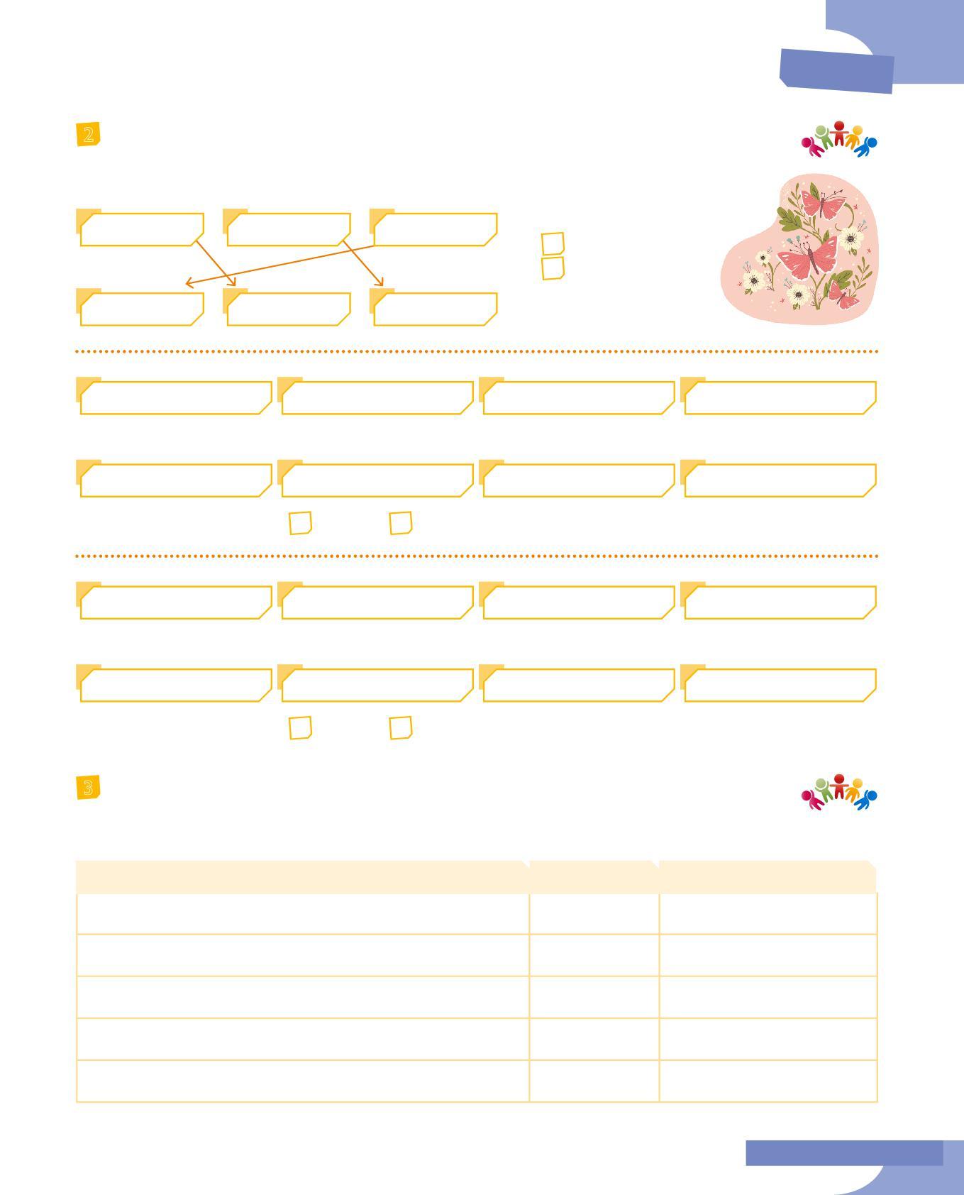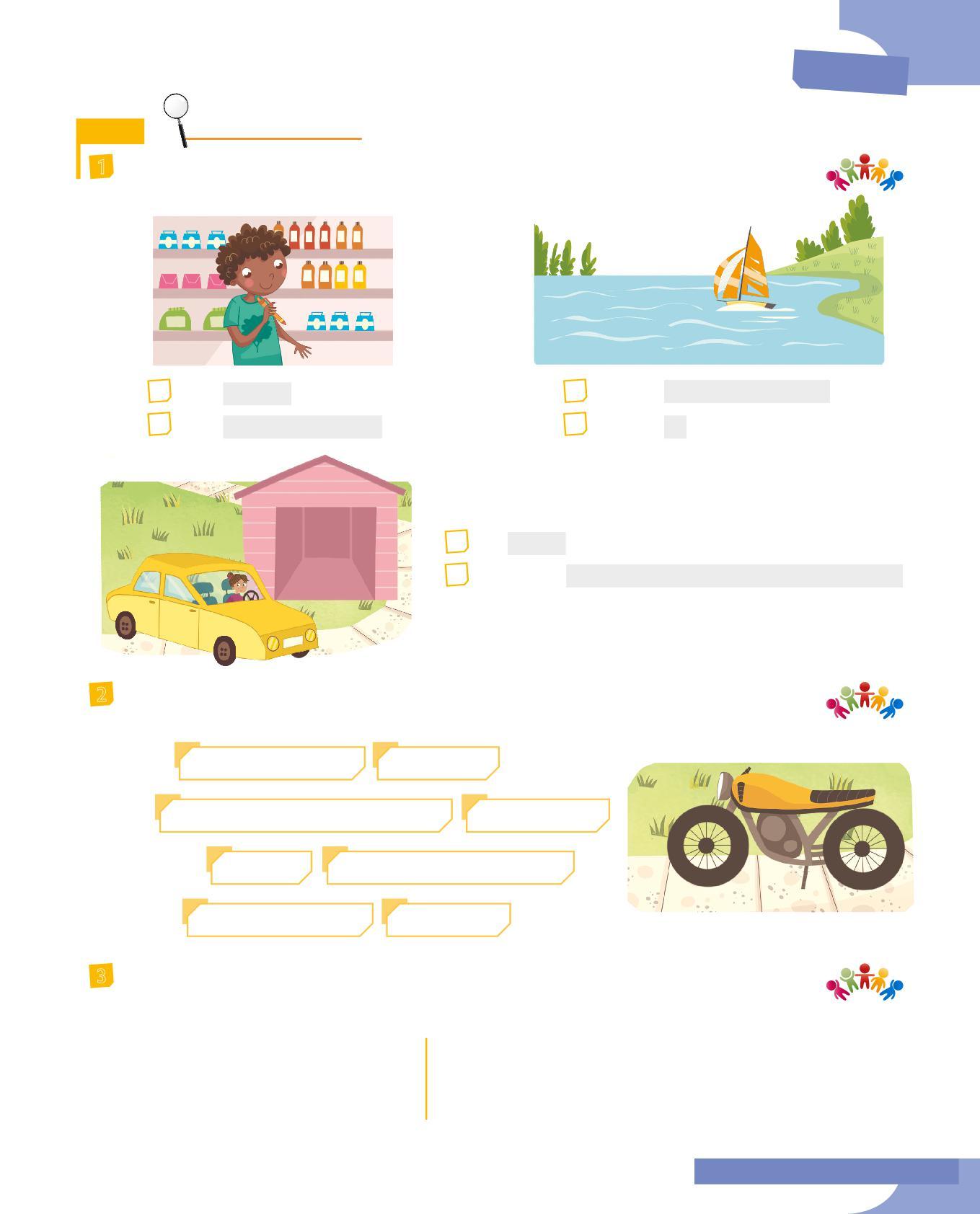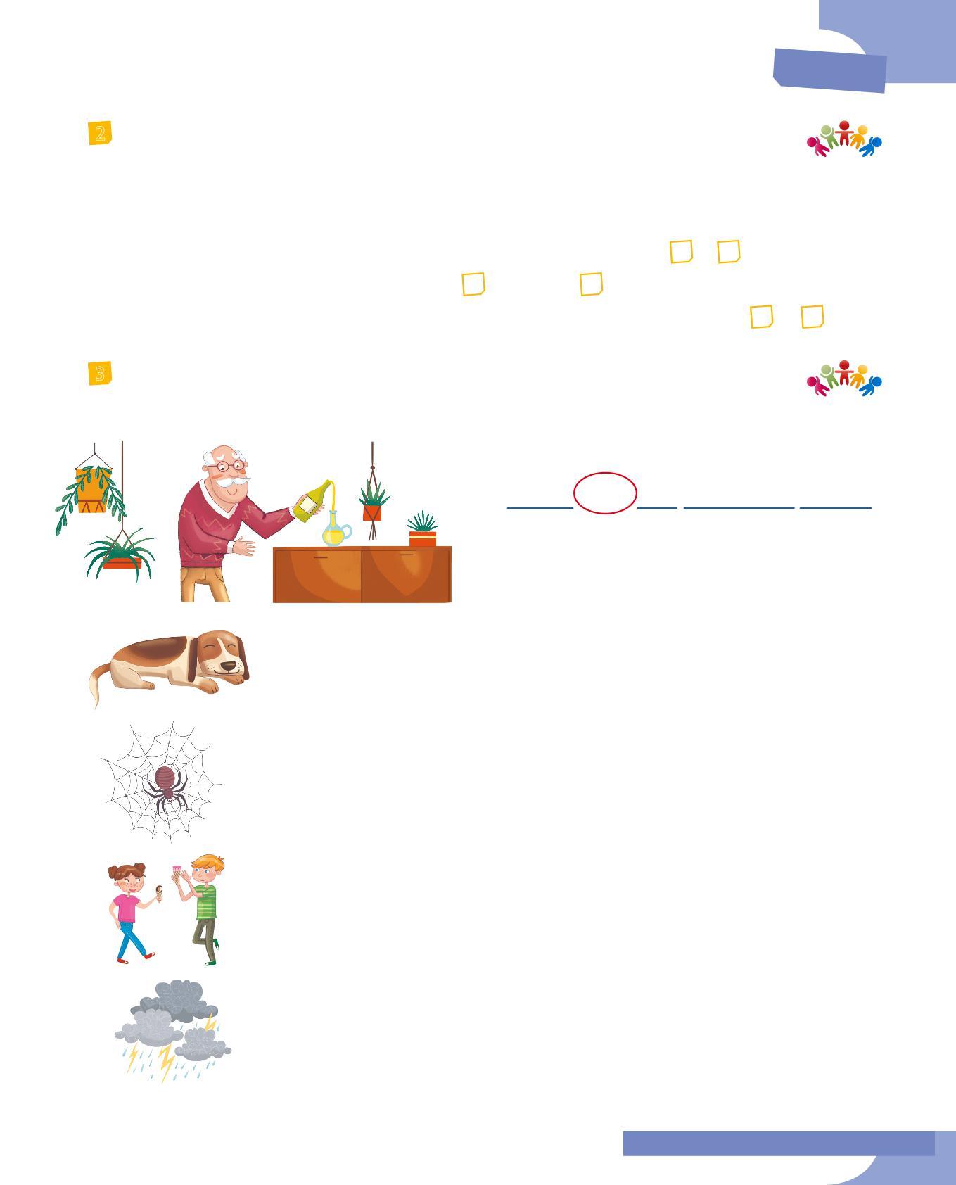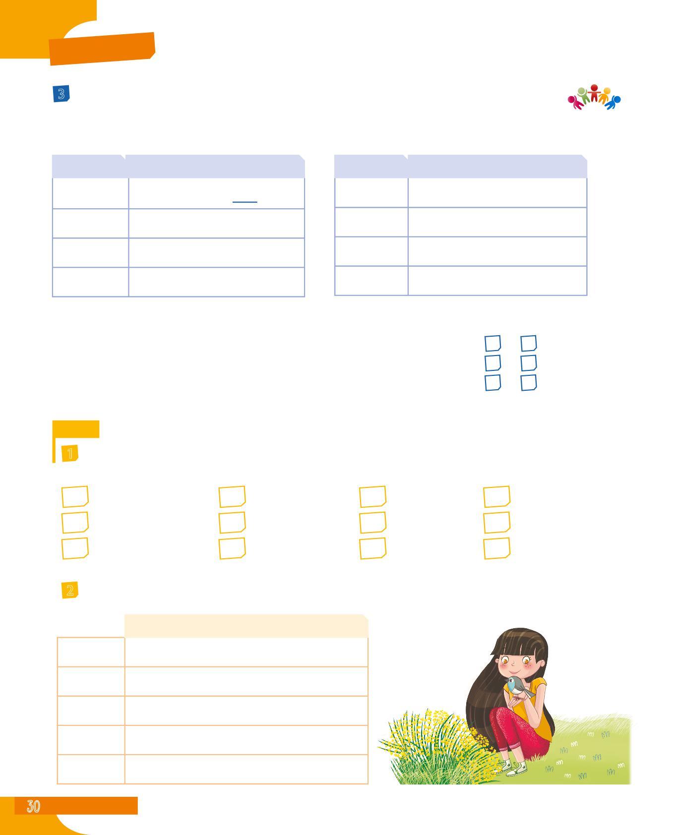 3 Abbina il soggetto al verbo adatto colorando allo stesso modo i cartellini: fai attenzione all’accordo nella persona e al significato. Poi scrivi delle frasi minime con le coppie soggetto-verbo che hai formato.