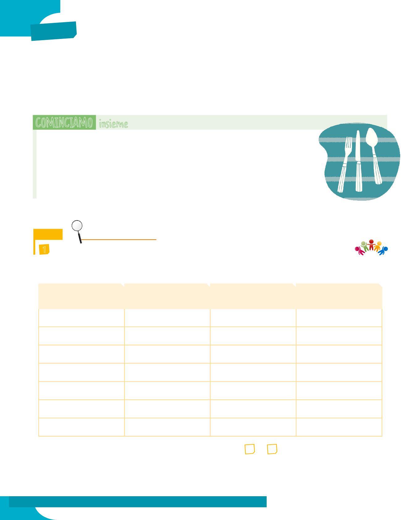 4 In ogni frase sottolinea l’argomento oggetto, poi completa la tabella osservando se è introdotto da un articolo partitivo (oggetto diretto) o da una preposizione articolata (oggetto indiretto). Segui l’esempio.