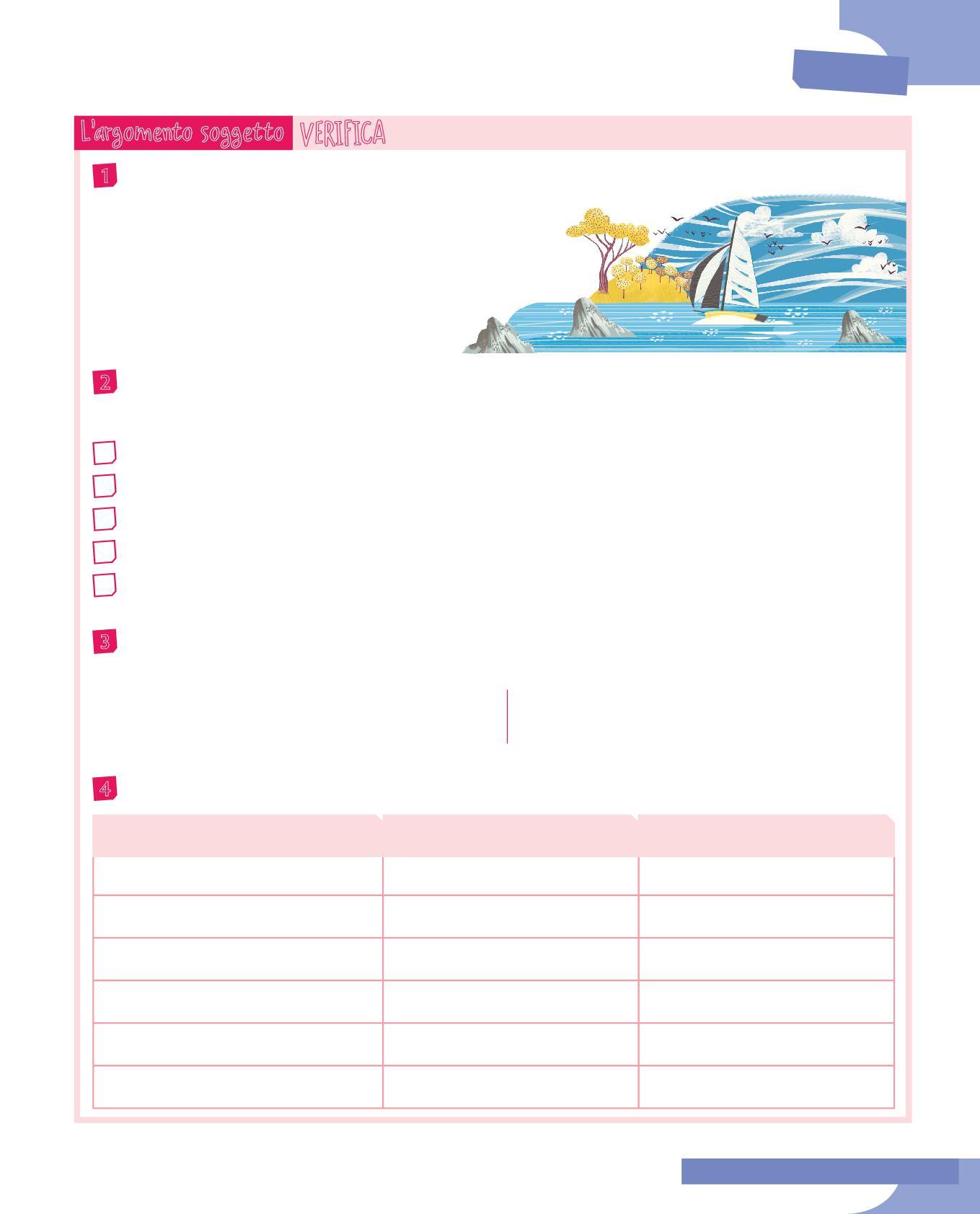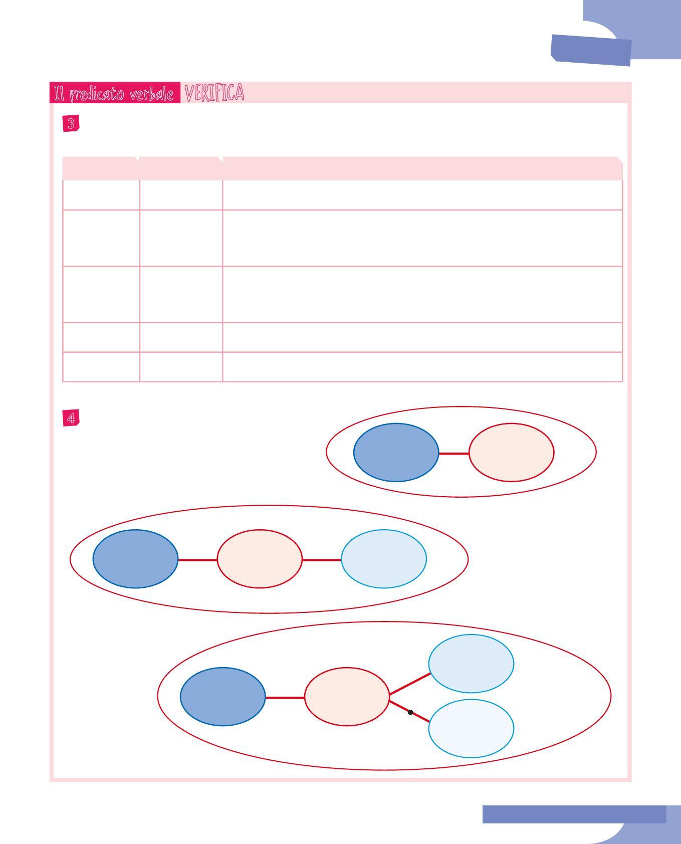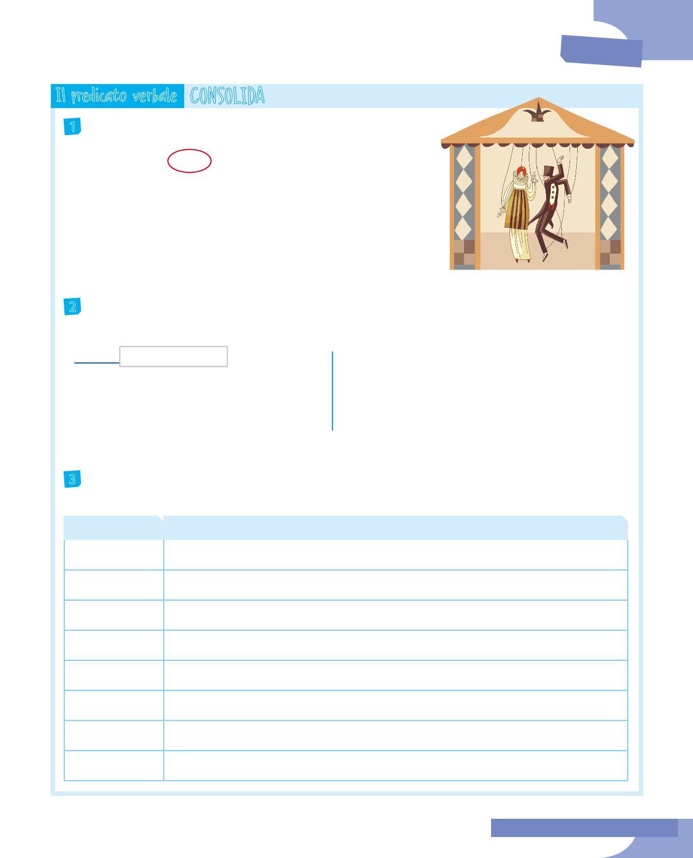 3 Dopo aver riletto le frasi dell’esercizio precedente, rifletti su ciò che il predicato verbale racconta sul soggetto e completa la tabella. Segui l’esempio.