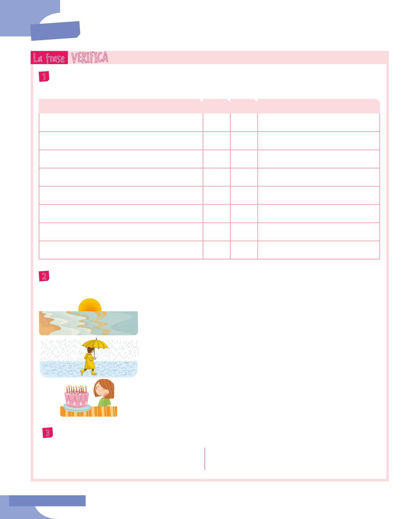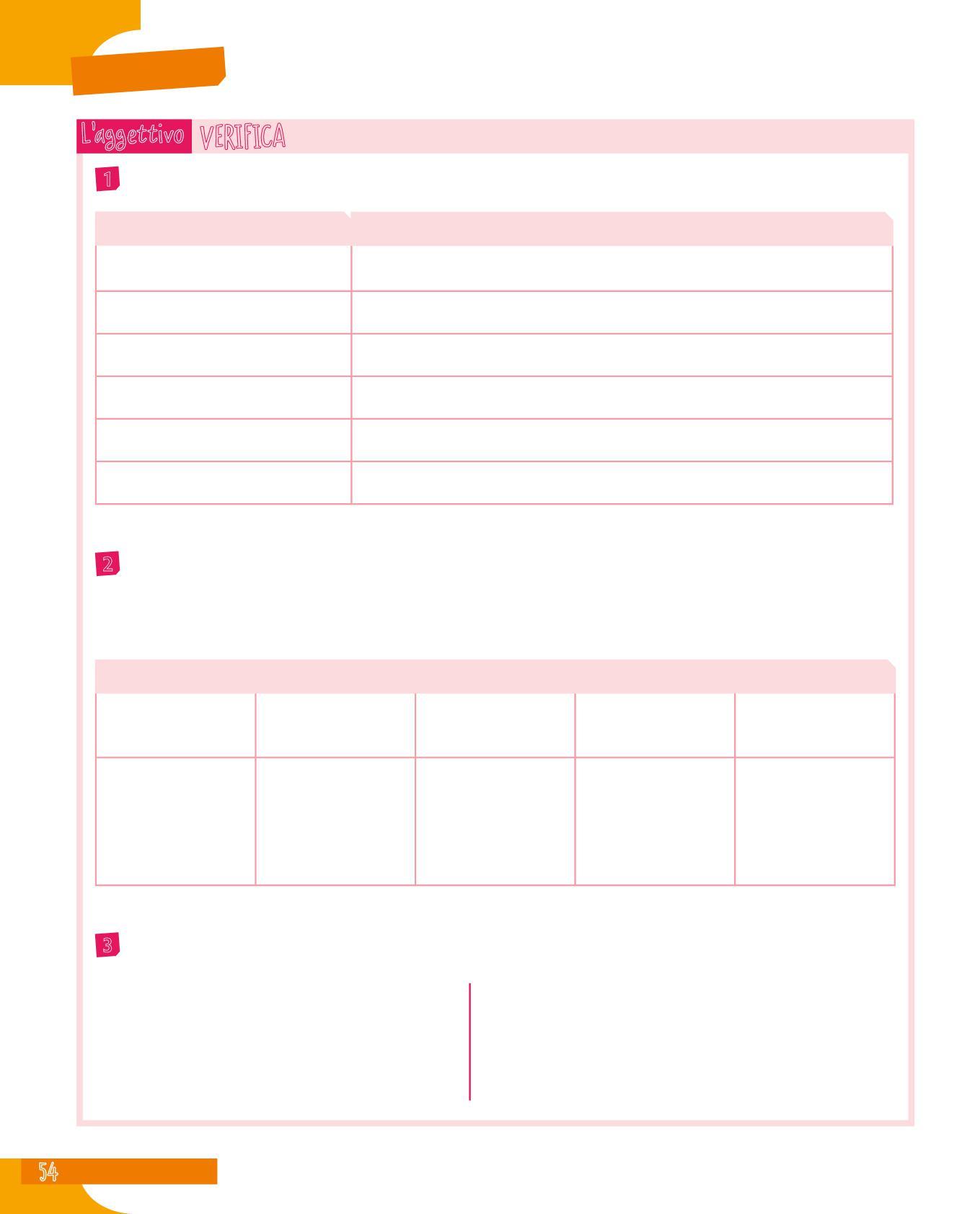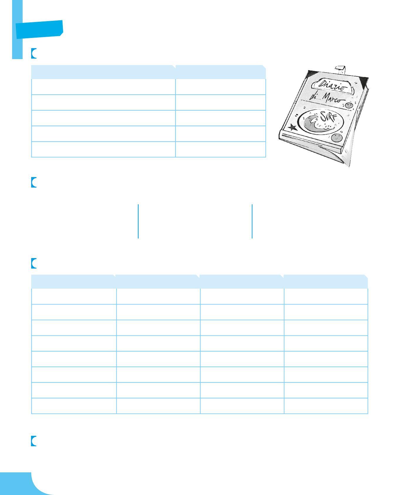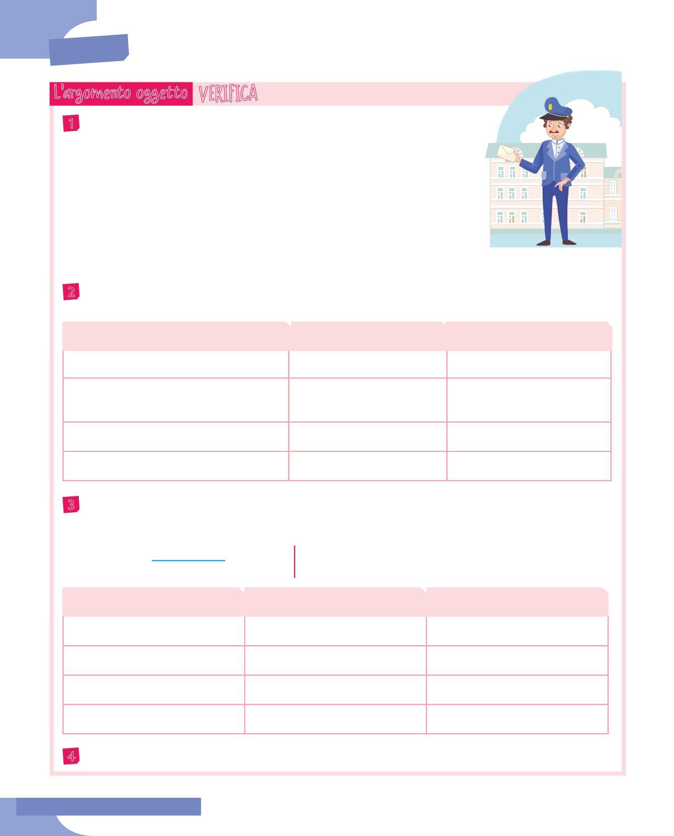 3 Dopo aver riletto le frasi dell’esercizio precedente, rifletti su ciò che il predicato verbale racconta sul soggetto e completa la tabella. Segui l’esempio.