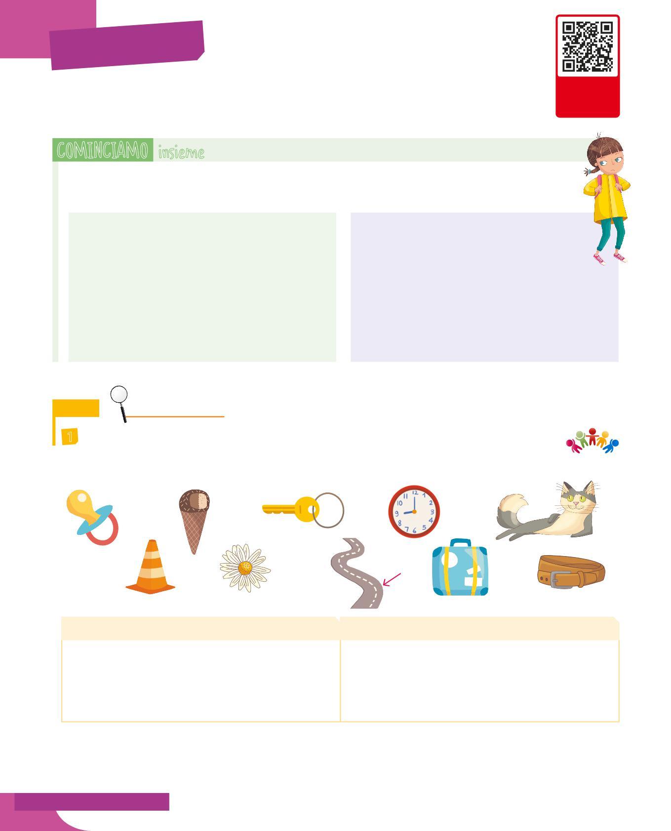 1 Osservate i disegni e scrivete le parole nella tabella, distinguendo in suoni duri e suoni dolci le parole con i gruppi: ca, co, cu, che, chi; ga, go, gu, ghe, ghi; ce, ci, cia, cio, ciu; ge, gi, gia, gio, giu.