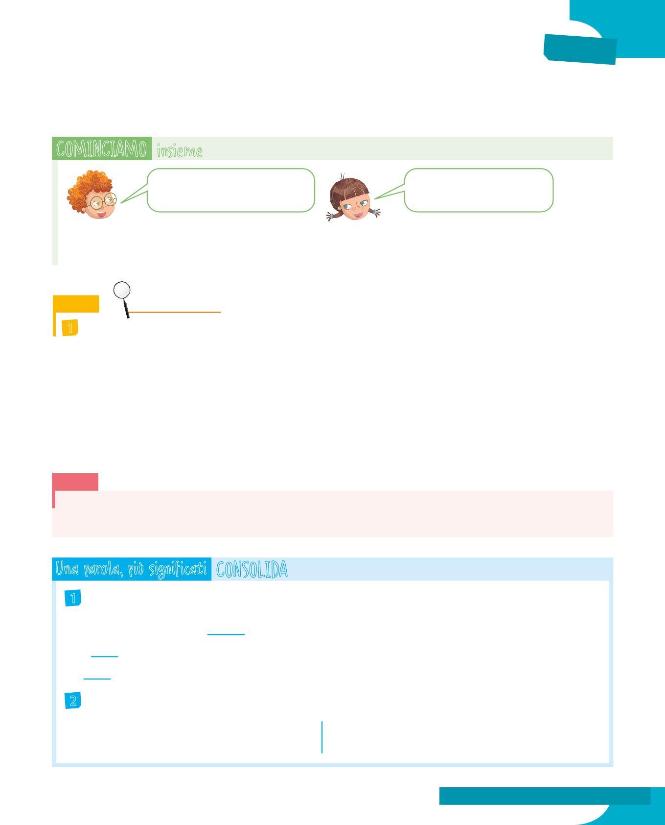 Con le pagine del LESSICO rifletterai sul significato delle parole e anche su qualcosa di affascinante: le parole non vivono da sole, ma creano tra loro relazioni!