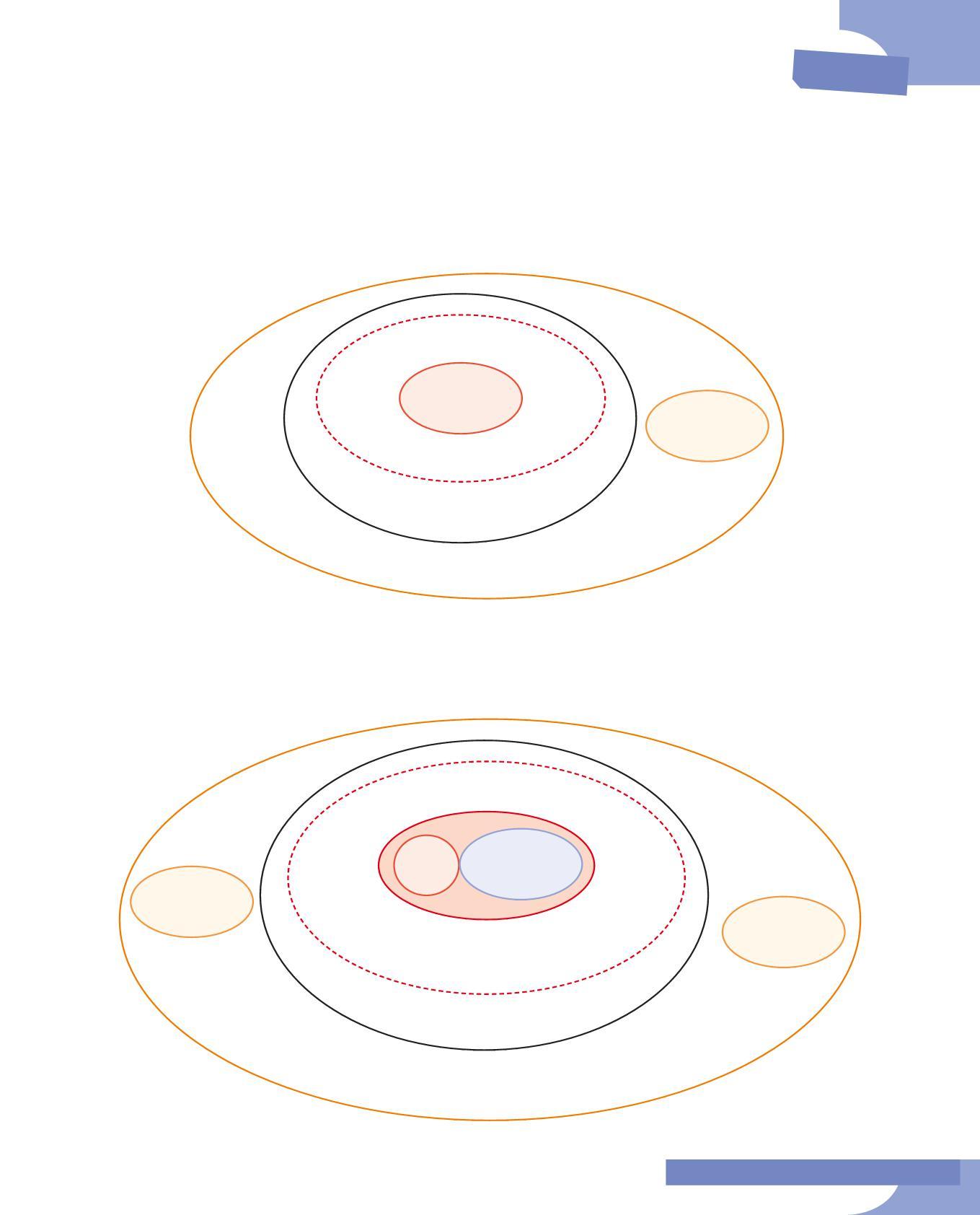 La FRASE SEMPLICE con tutti i suoi elementi (verbo + argomenti del nucleo, circostanti ed espansioni) si rappresenta graficamente in uno schema grafico a tre ovali Nell’ovale più interno, tratteggiato, c’è il NUCLEO (verbo + argomenti).