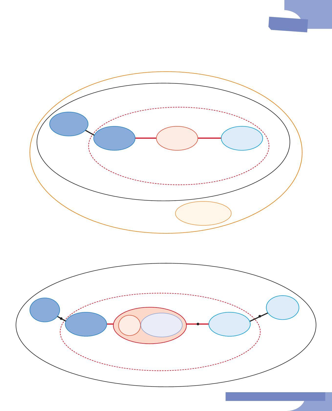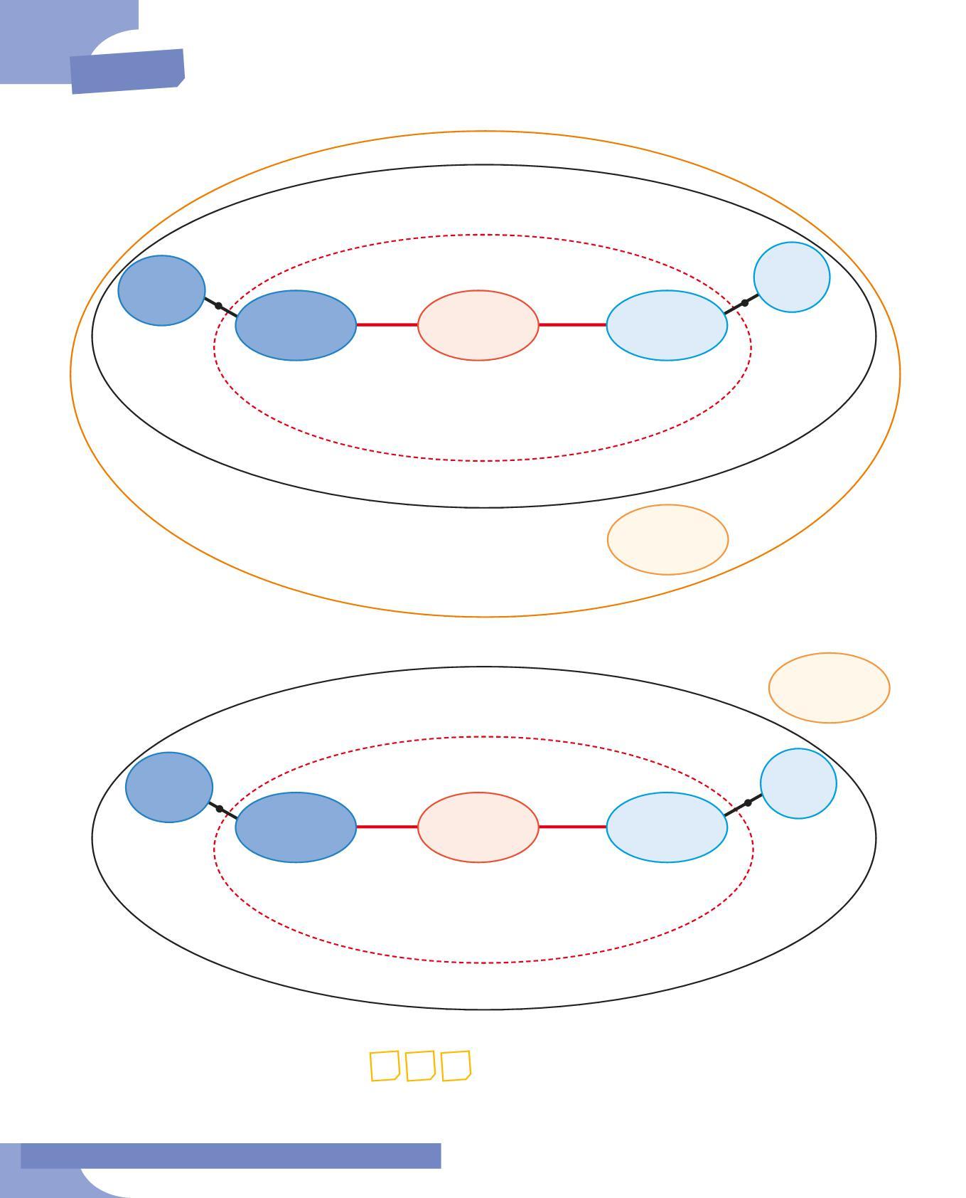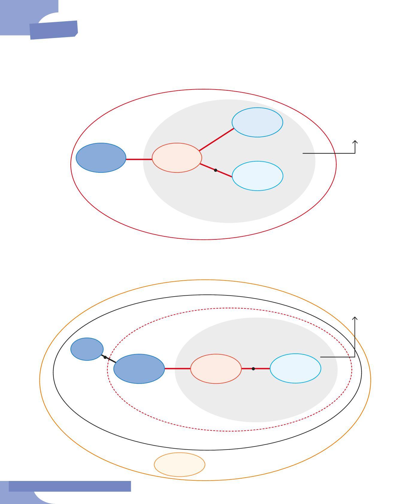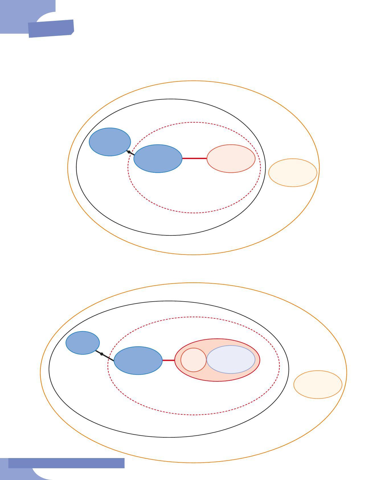 Nel secondo ovale, di colore nero, si collocano i CIRCOSTANTI, che si collegano all’elemento del nucleo a cui si riferiscono con una linea nera. Lungo questa linea di collegamento si mette un puntino nero, accanto al quale si scrive la preposizione semplice o articolata che fa da “gancio”.