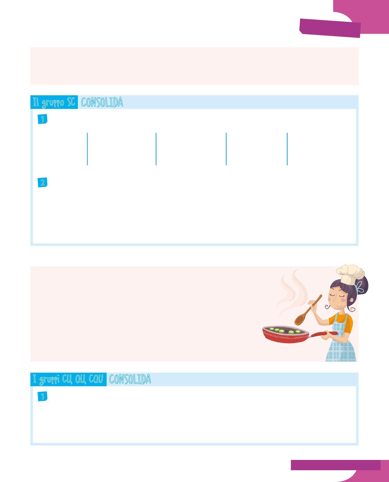 • suoni dolci nei gruppi ce, ci; cia, cio, ciu; ge, gi; gia, gio, giu.